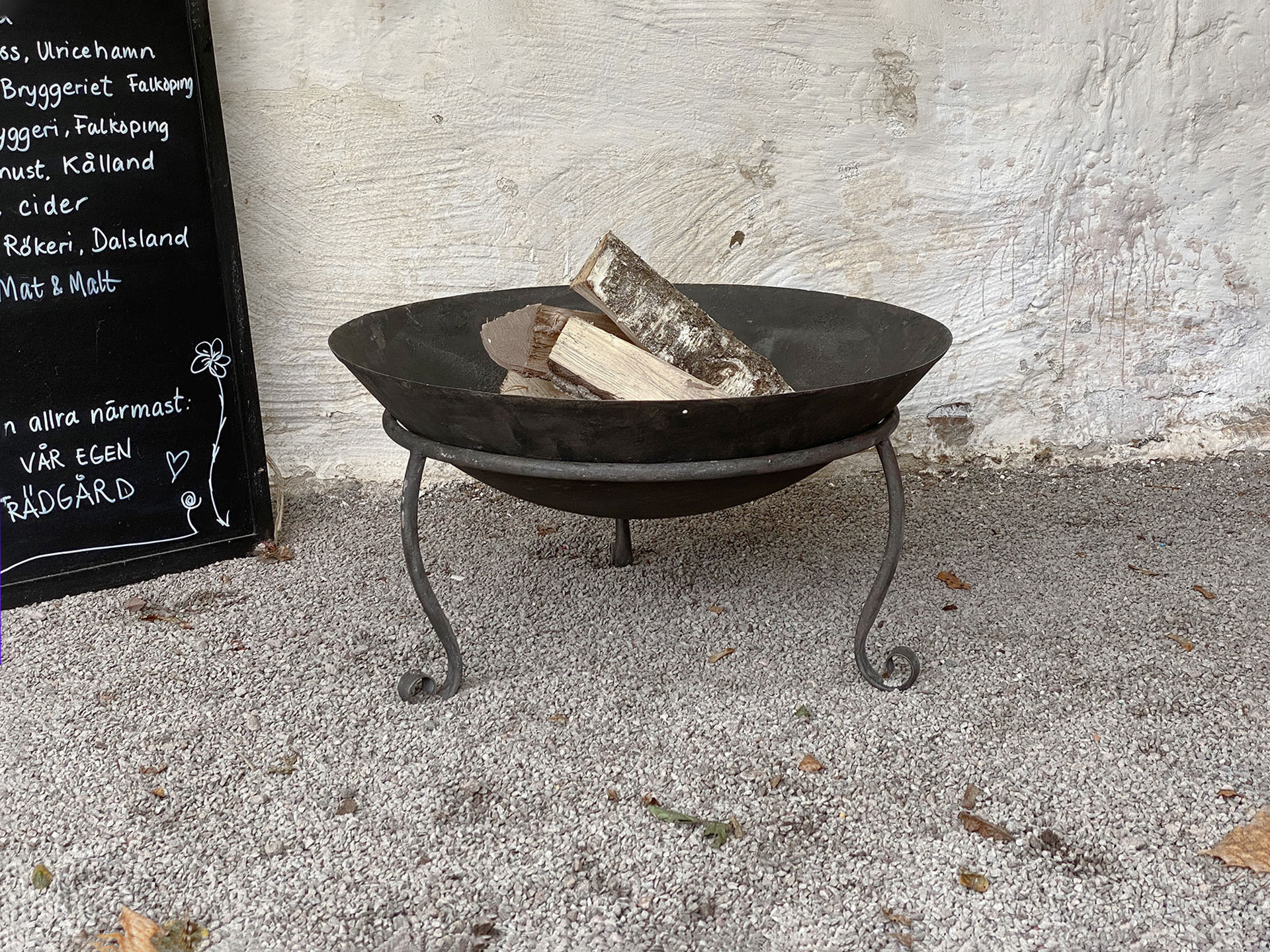 Bålpannen til venstre koster 999,- og er i to deler. Jeg har forhandlet den i mange år nå og den er populær. Enkel og grei - ikke noe snikk-snakk - kun en klassisk bålpanne!
