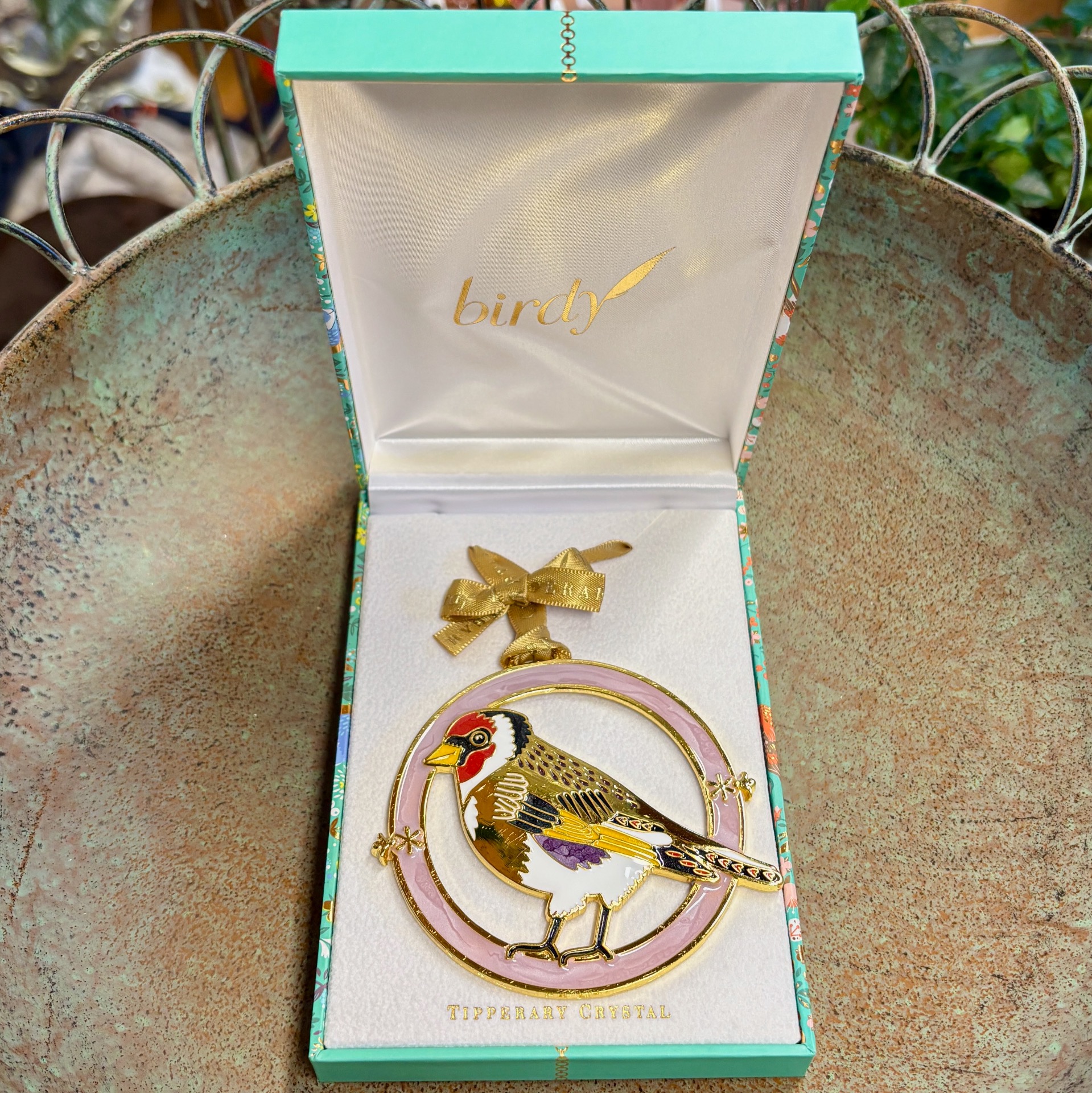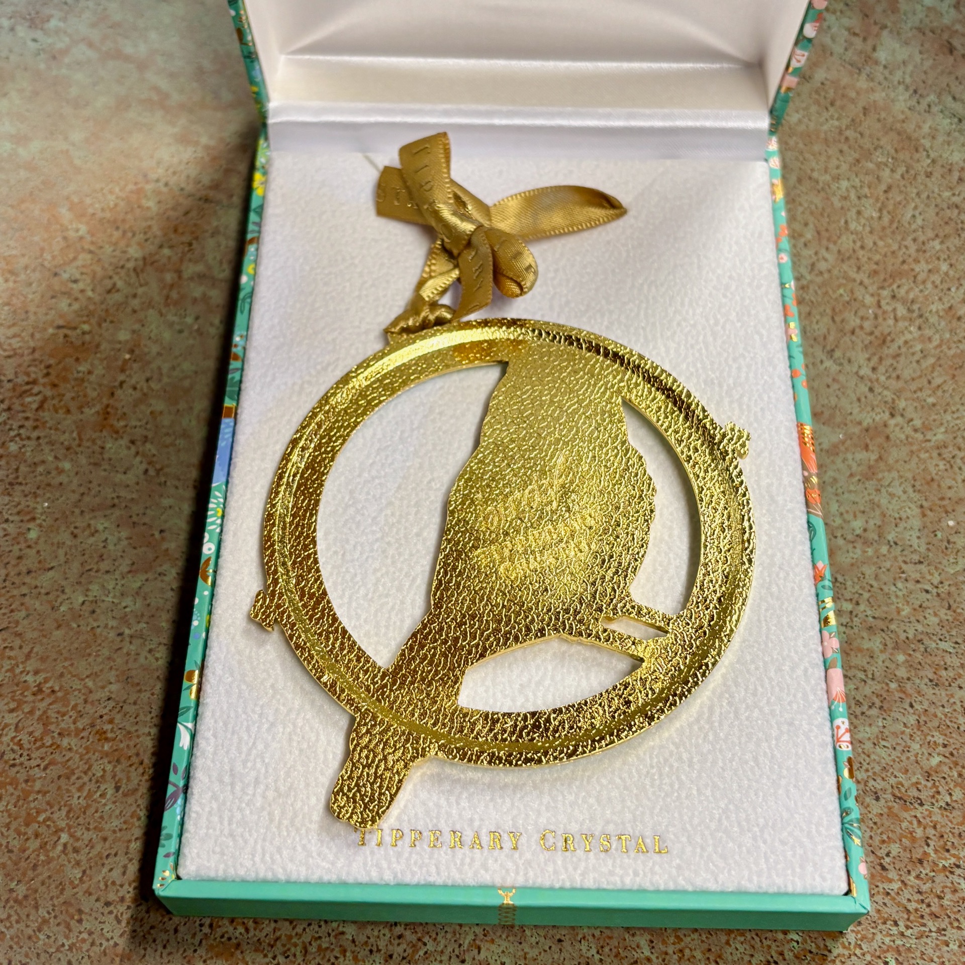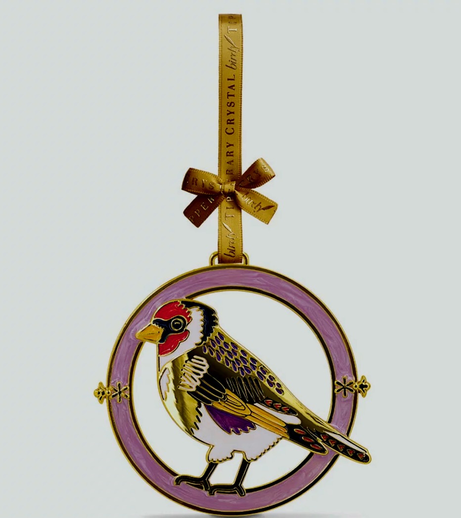 Den er hengende, snor følger med og det er også gull-aktig bånd med Tipperary skrevet på. Fuglen er laget i metall, emaljert og den er virkelig noe for seg selv. Fuglen ligger i en gave-eske som er hengslet på toppen, har nydelig mønster på utsiden med gull-elementer og fløyelsaktig stoff på innsiden. Virkelig et flott gavetips!