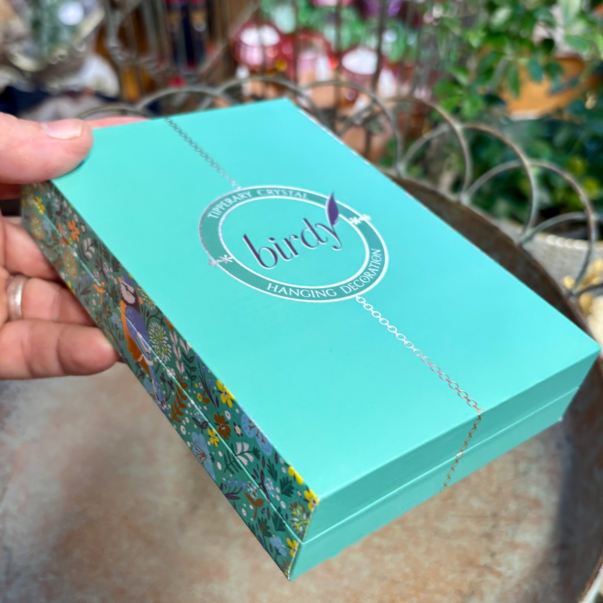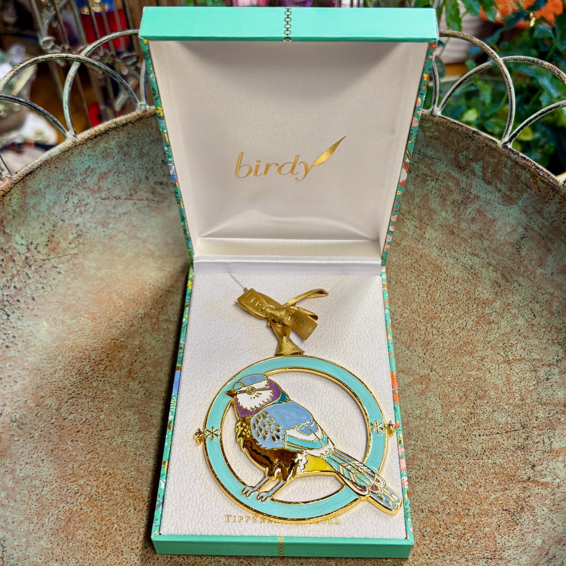 Den er hengende, snor følger med og det er også gull-aktig bånd med Tipperary skrevet på. Fuglen er laget i metall, emaljert og den er virkelig noe for seg selv. Fuglen ligger i en gave-eske som er hengslet på toppen, har nydelig mønster på utsiden med gull-elementer og fløyelsaktig stoff på innsiden. Virkelig et flott gavetips!