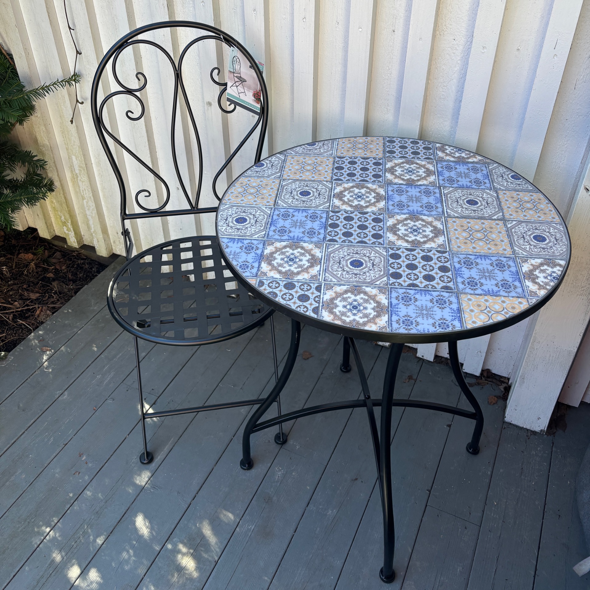 På ene bildet ser du bordet sammen med cafe-stoler som passer godt til bordet.
