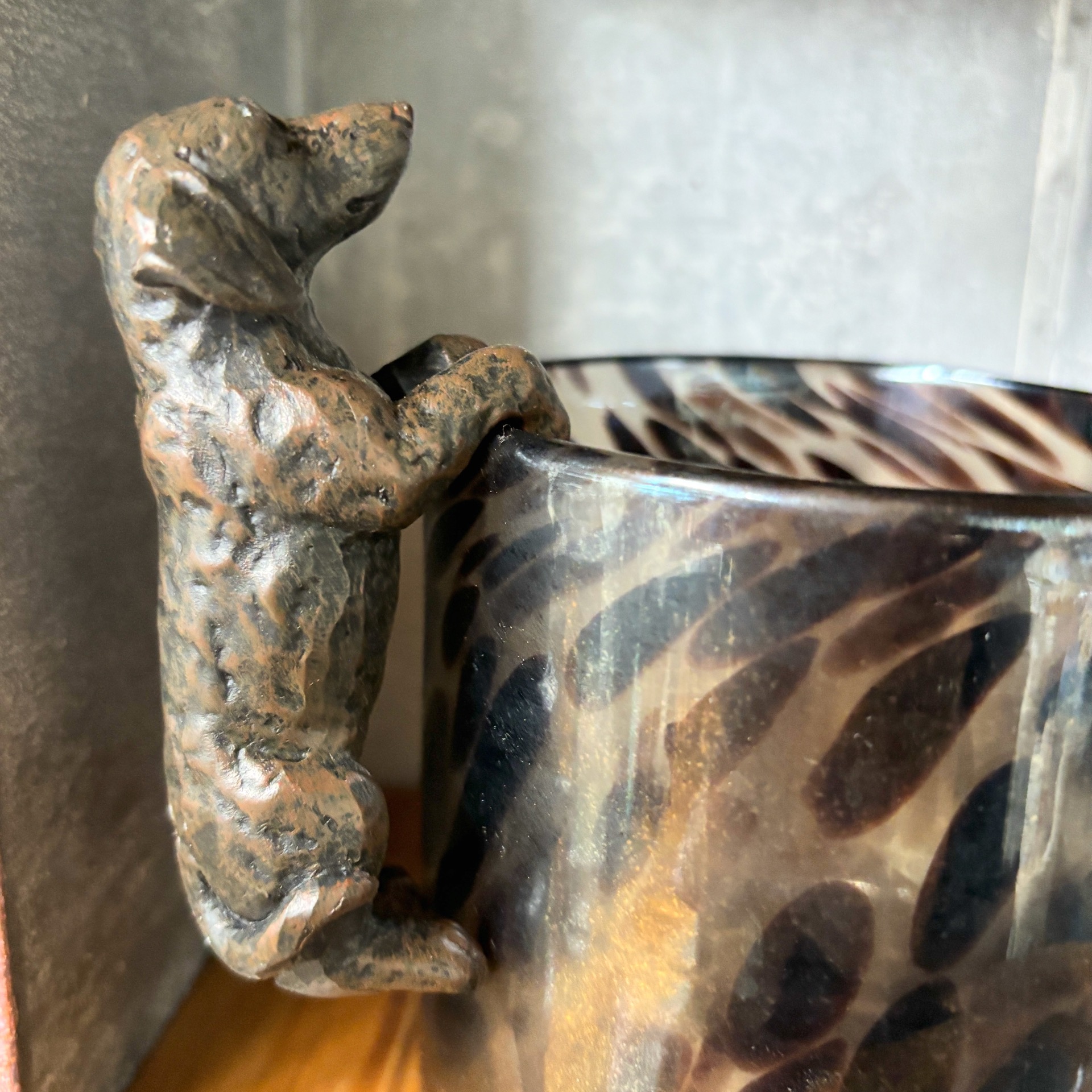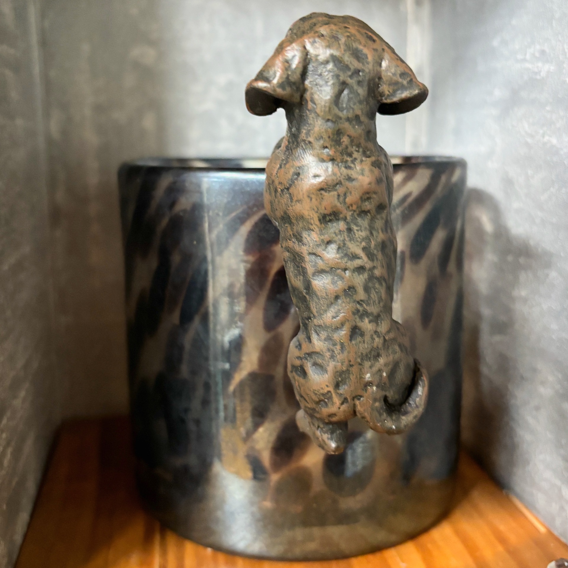 Gøyal dachs som har den evnen at han lett kan henge på kanten av et glass eller hvor han kan henge og kan ha bakbena inntil noe. :-)