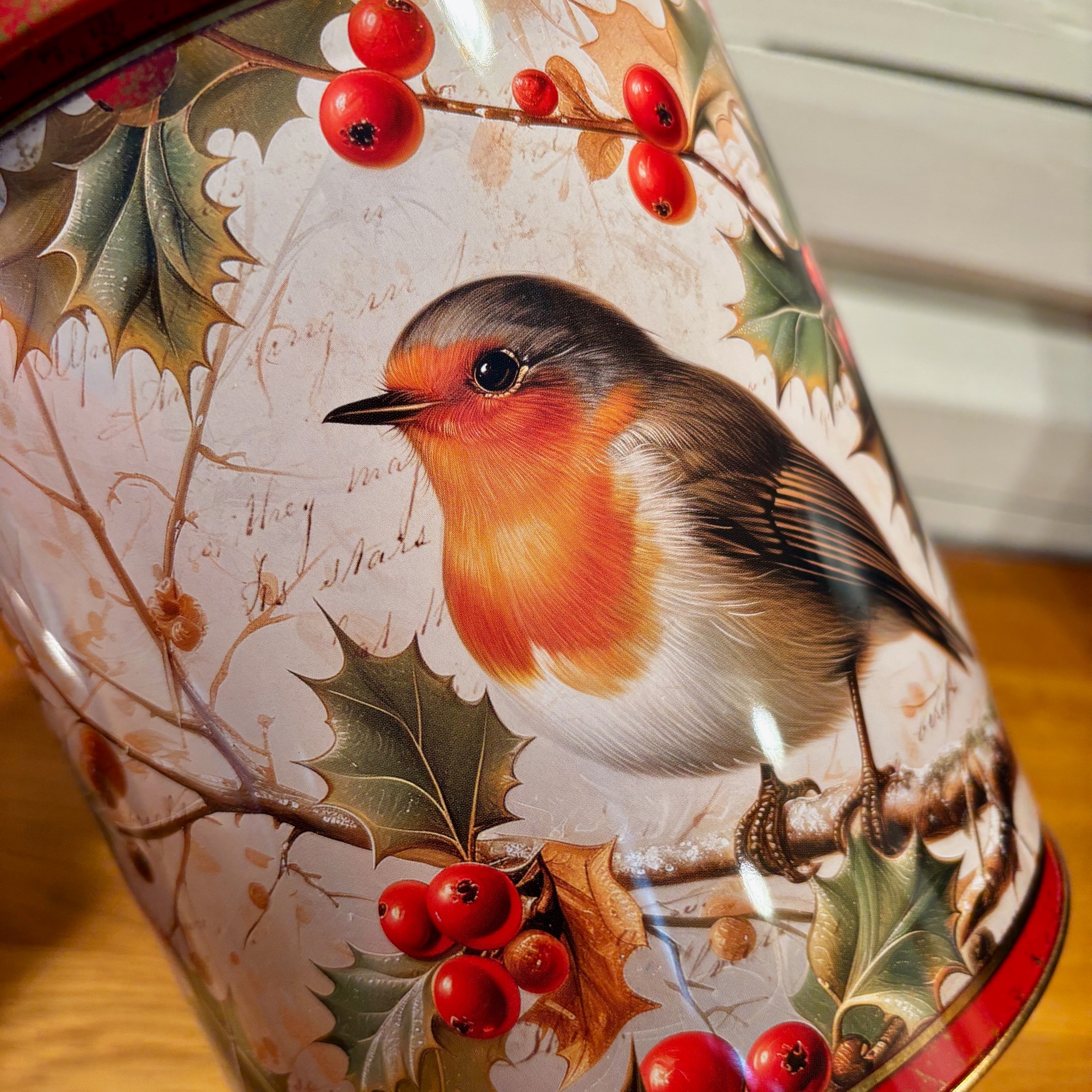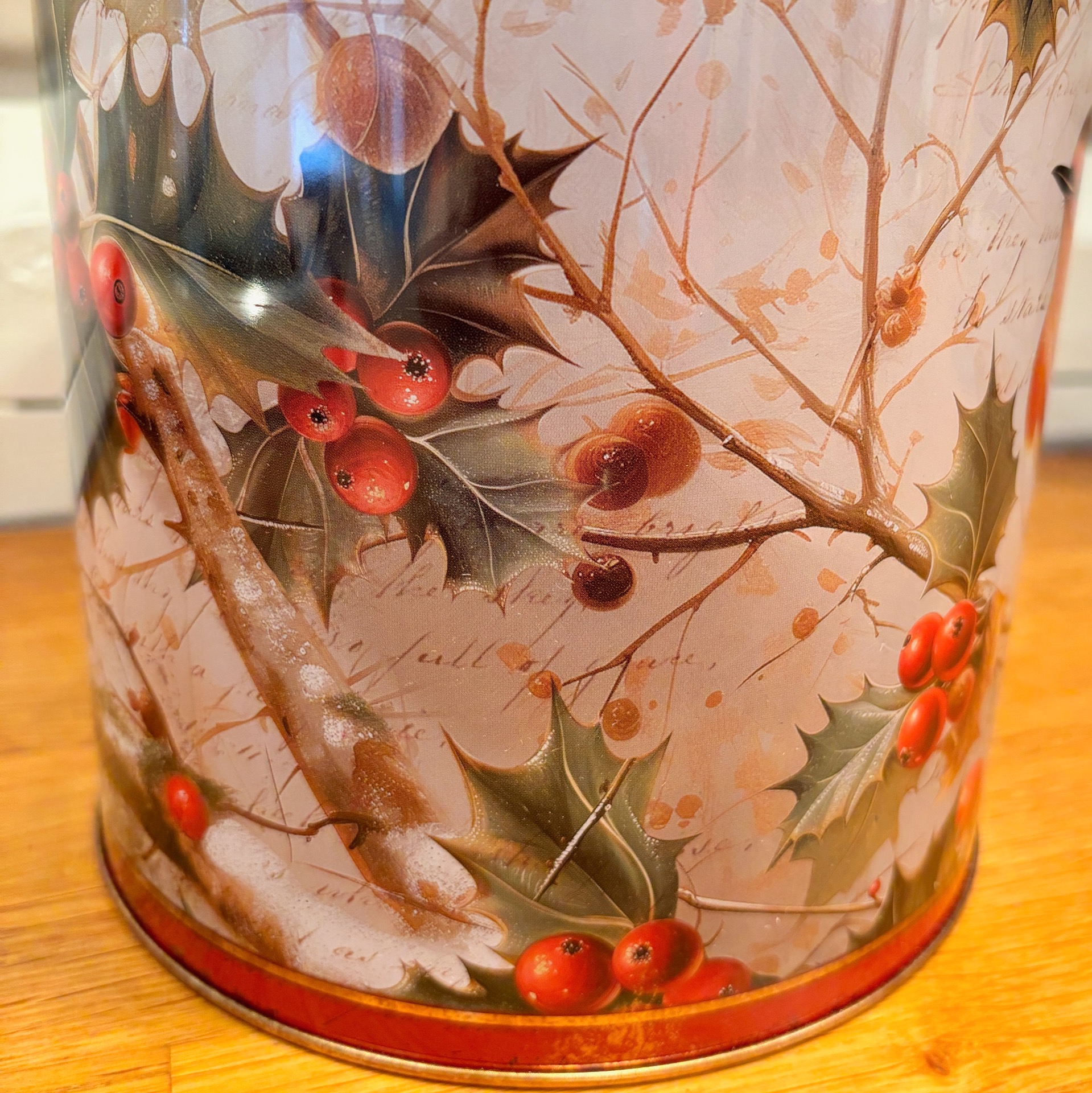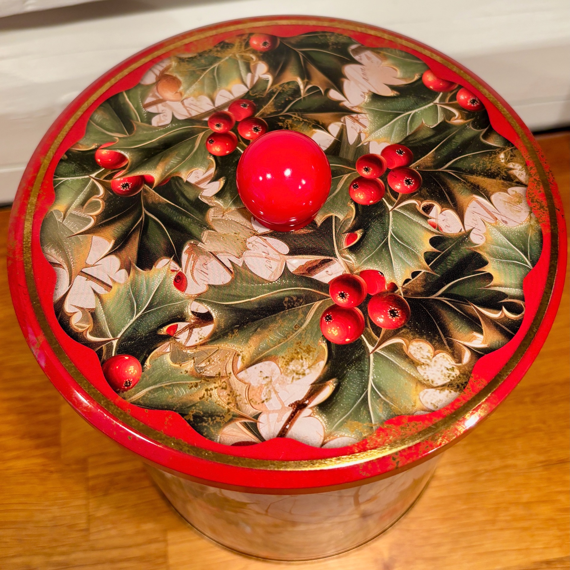 Metallboksen med lokk (som sitter godt - det er viktig for lagring), er super til kaker og kjeks-lagring. Men det bestemmer du selvsagt selv hva du vil bruke den til. Godt julegavetips også - til den som er glad i vakre ting i julete farger!