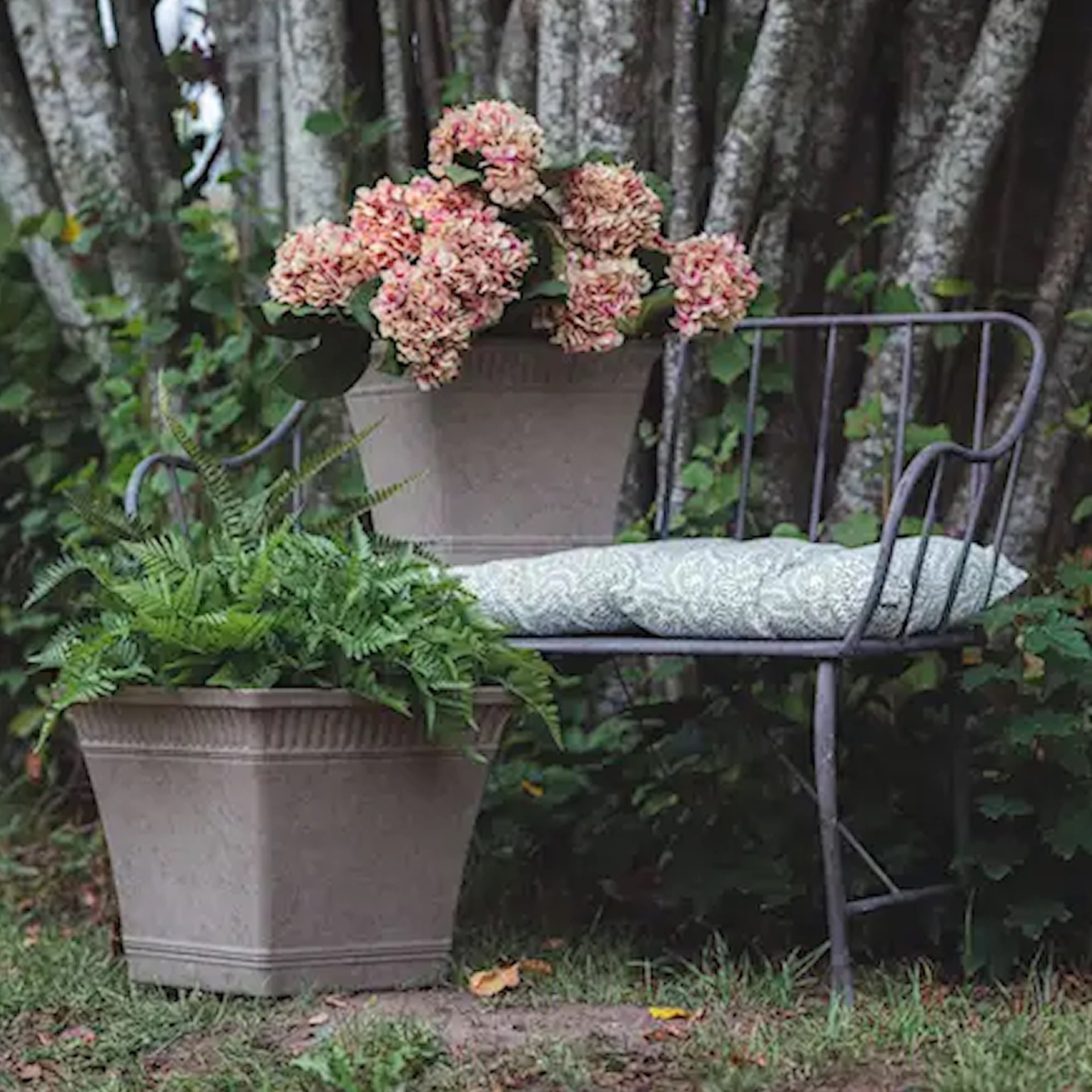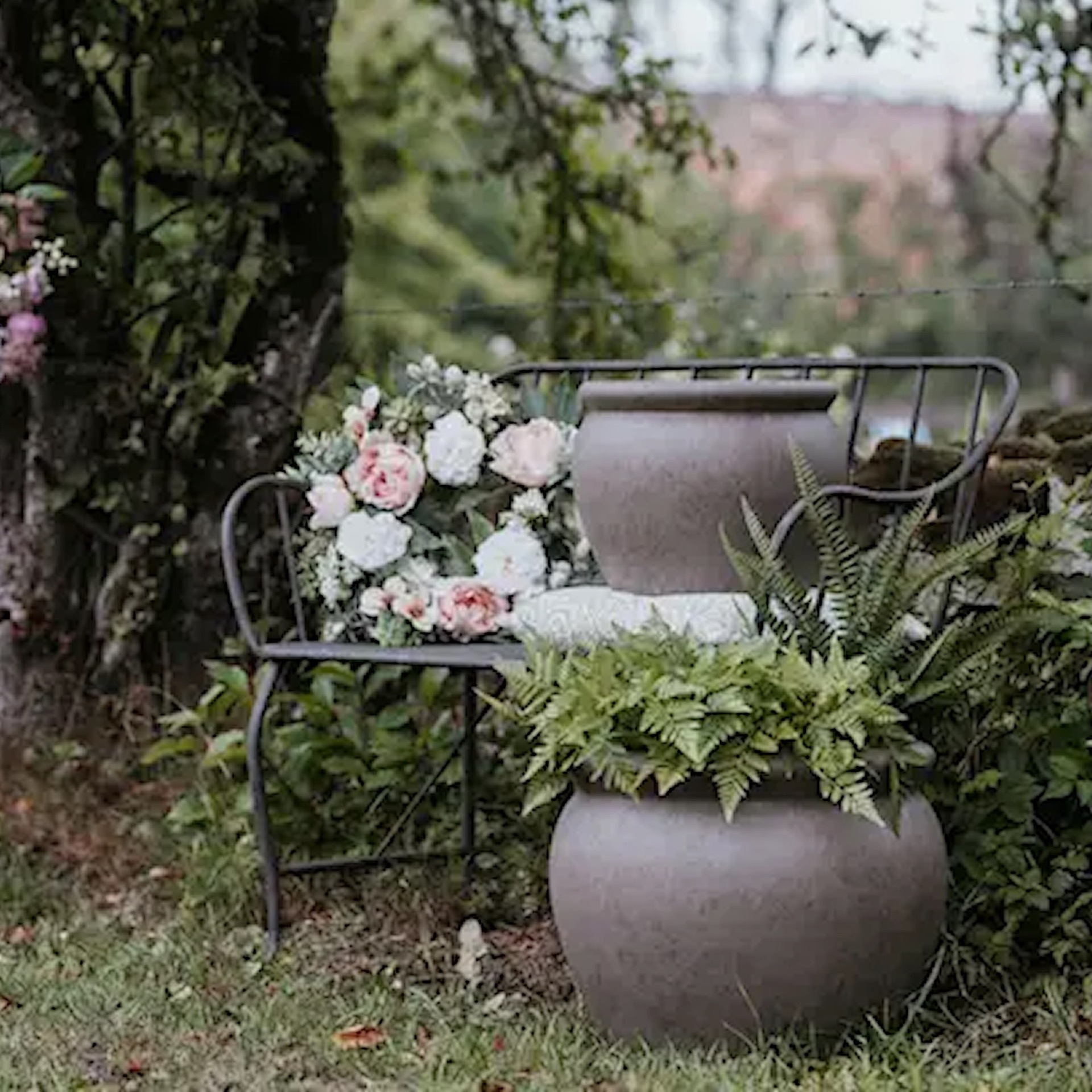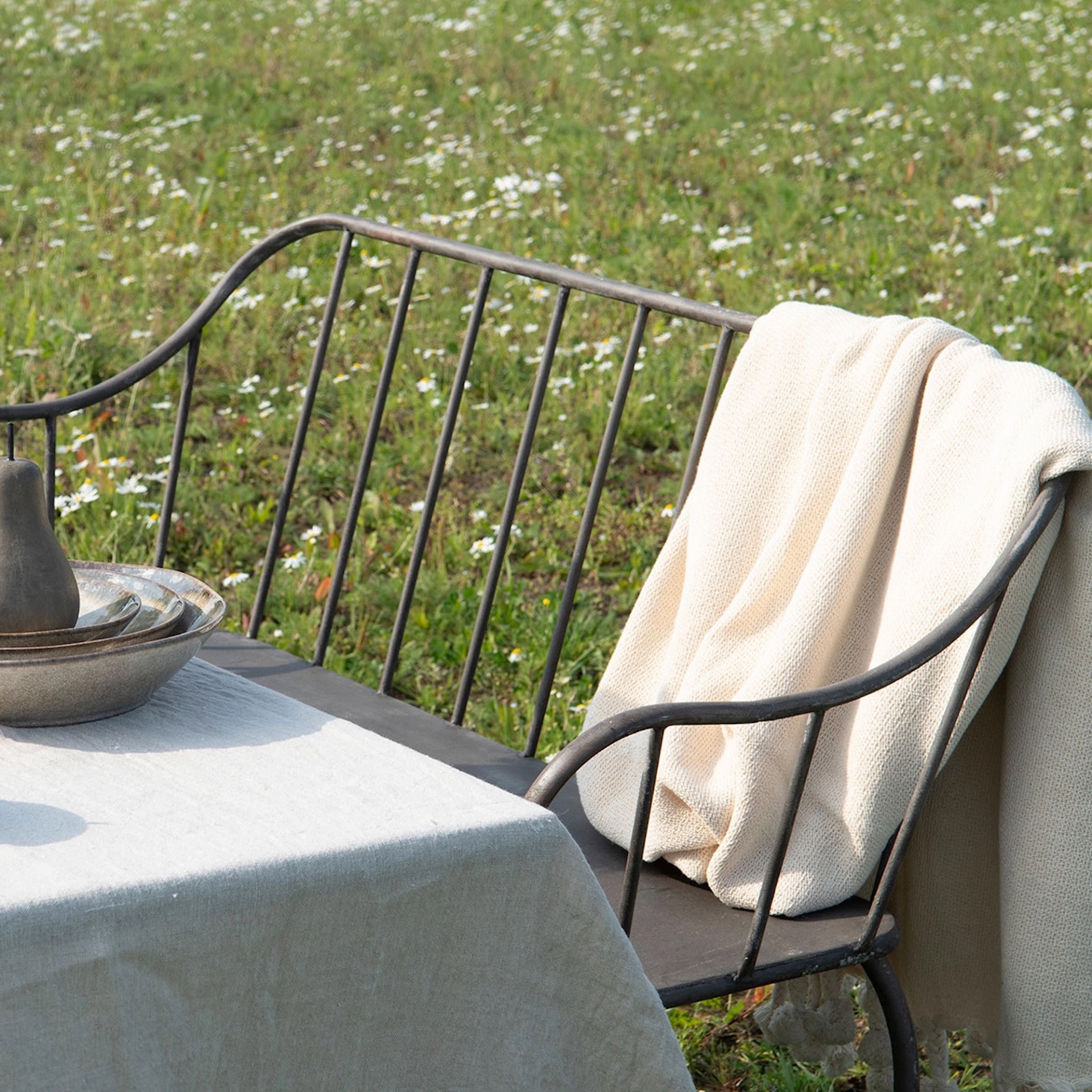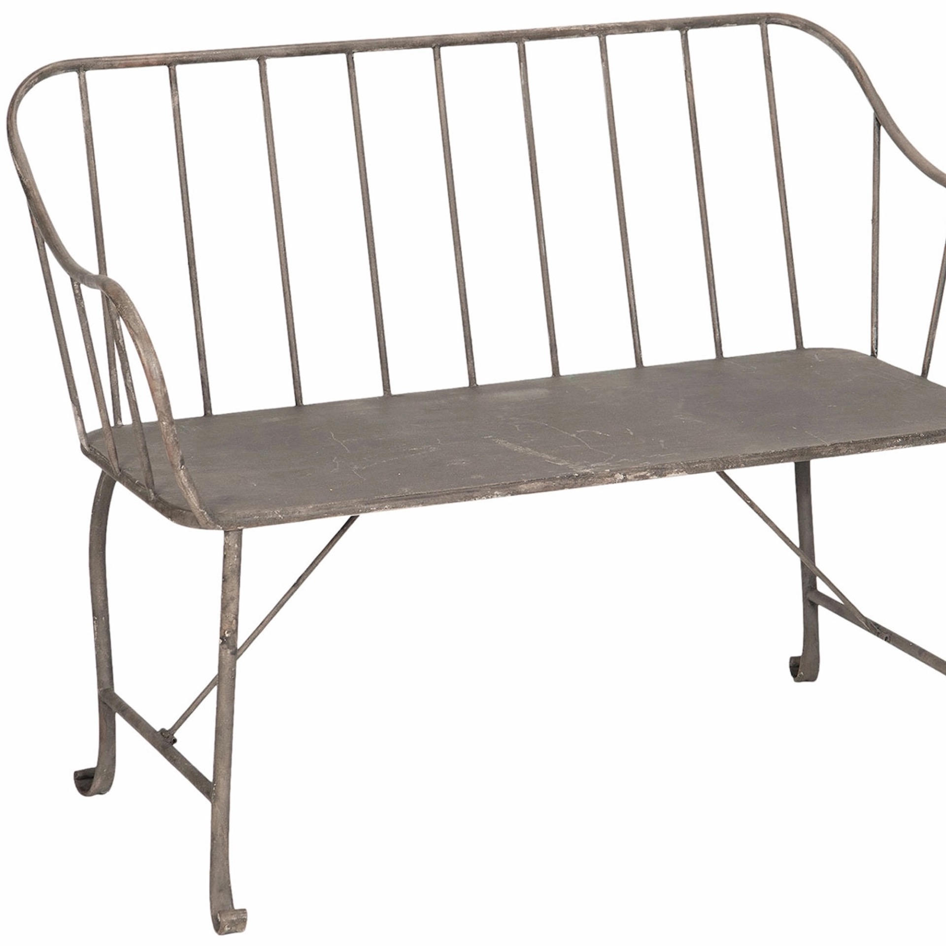 Hagebenk i brun/grå metall med enkle, ujålete former. Enkel å sette sammen. Personlig får jeg assosiasjoner til Sverige når jeg ser den, uvisst av hvilken grunn :-)