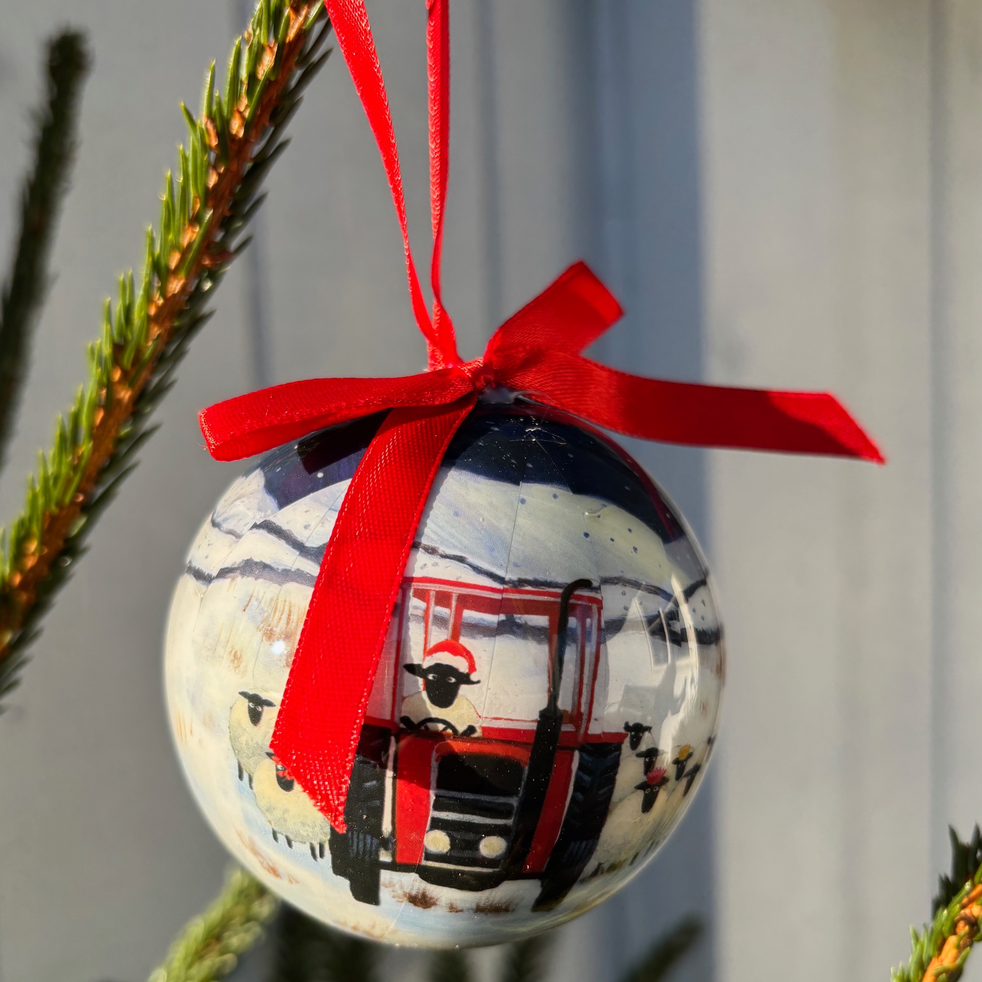 Morsomme juletrekuler i plast med sauer som det bærende motiv. Nettbutikken har fire ulike motiv i denne serien - som er designet av Thomas Joseph.