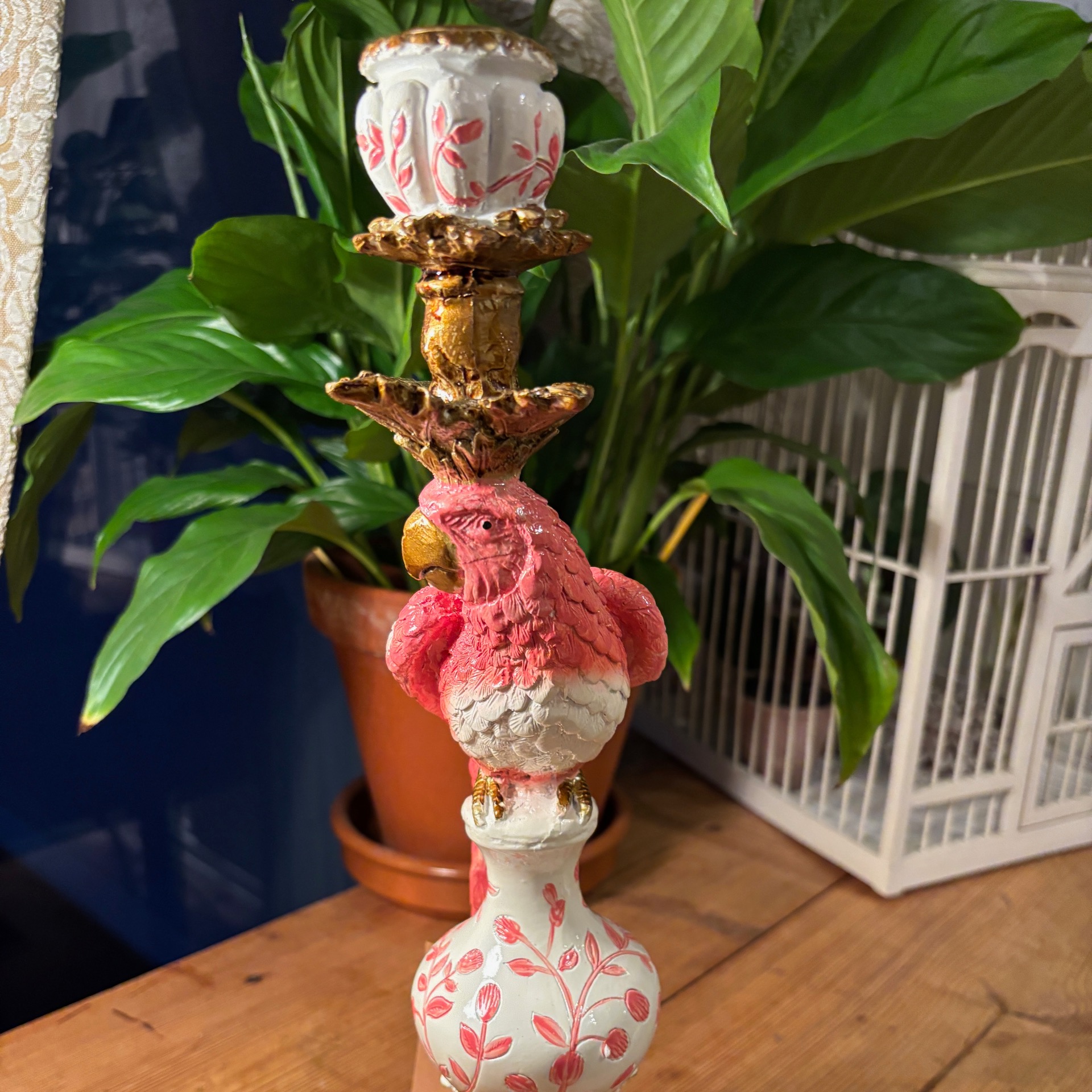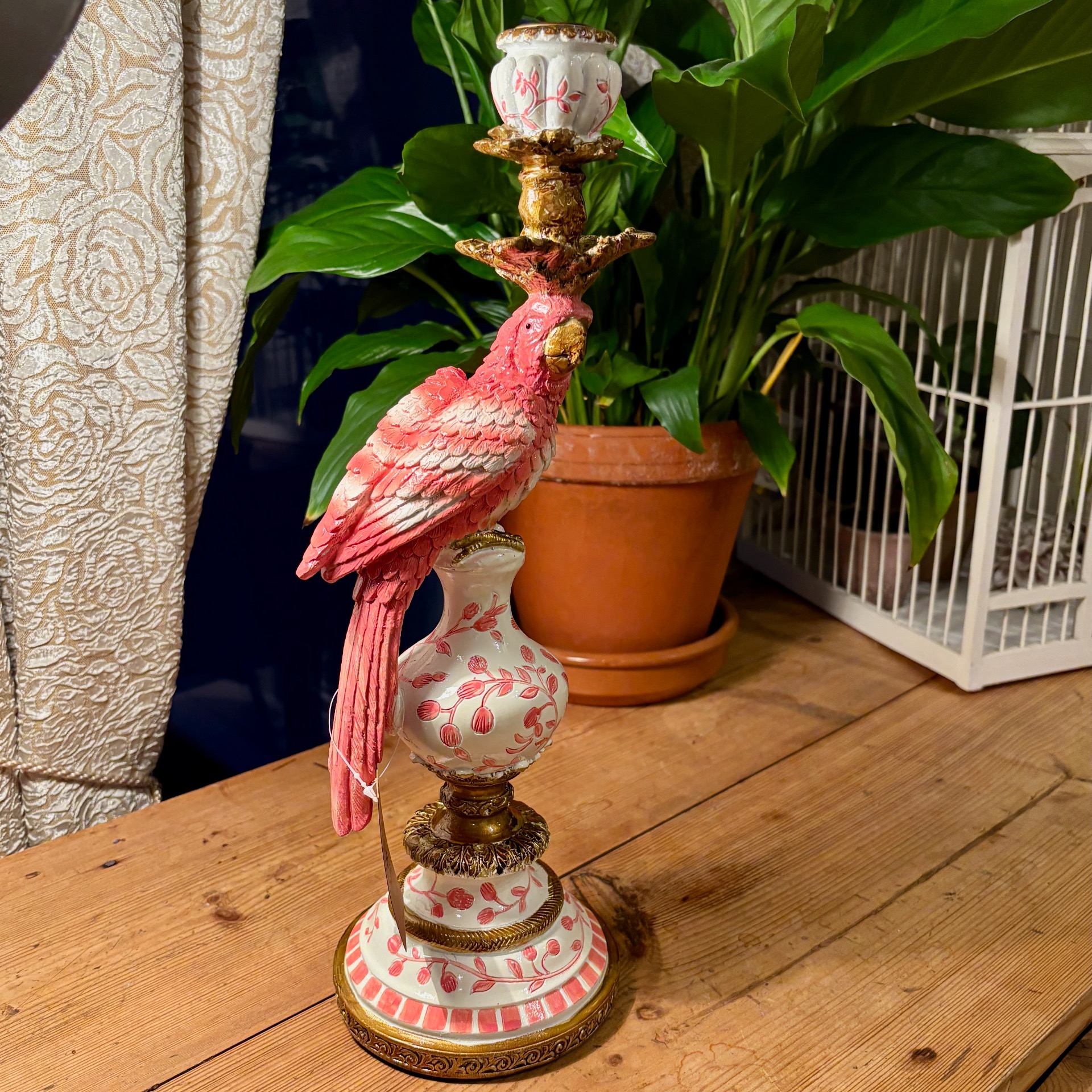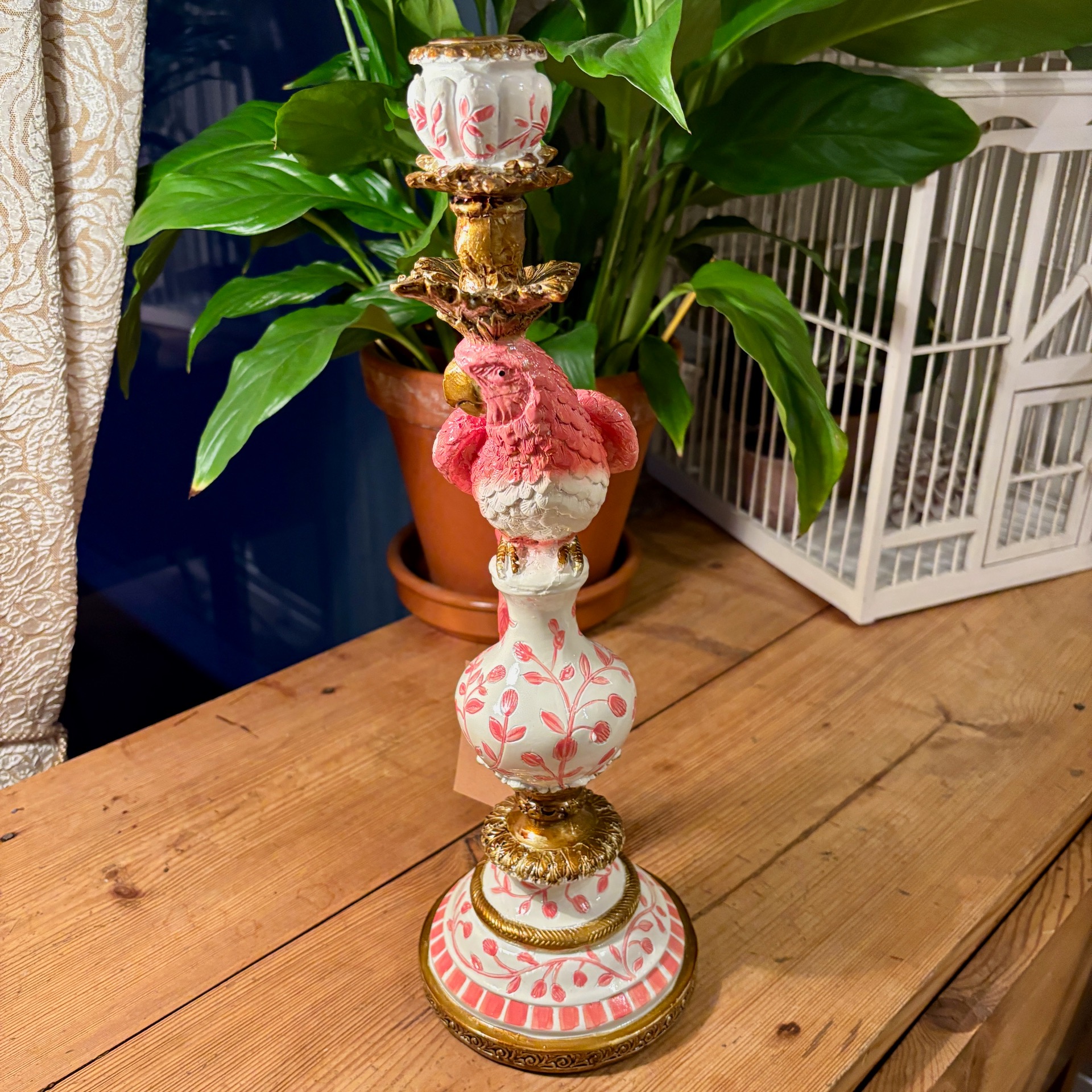 Smellvakker lysestake i rosa utgave! Får en ikke litt kribling i lattermusklene når en ser denne, så vet ikke jeg. Mange fine detaljer, se på stetten feks - nydelige blader i rosa på hvit bunn, litt gull her og der - det må bare bli bra!