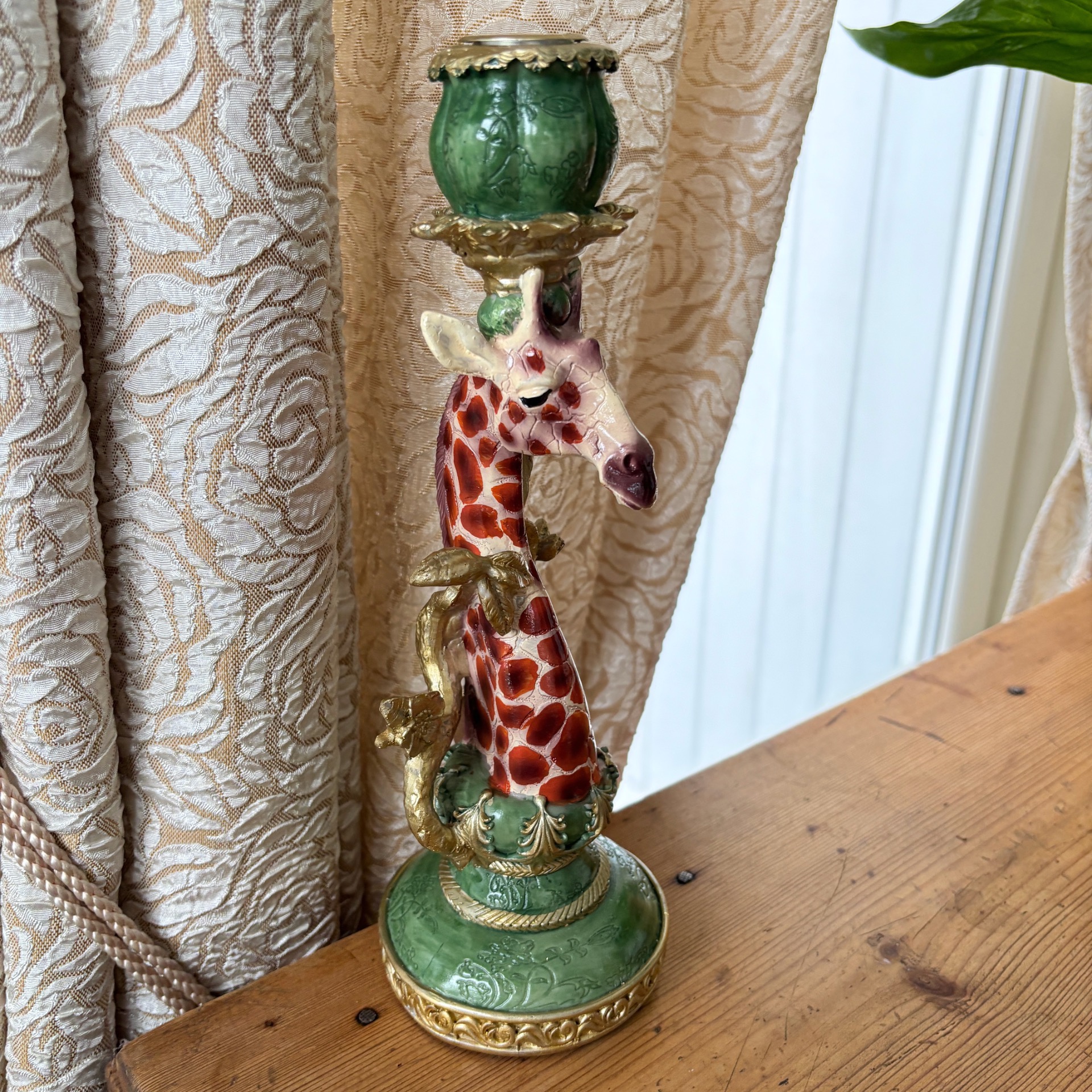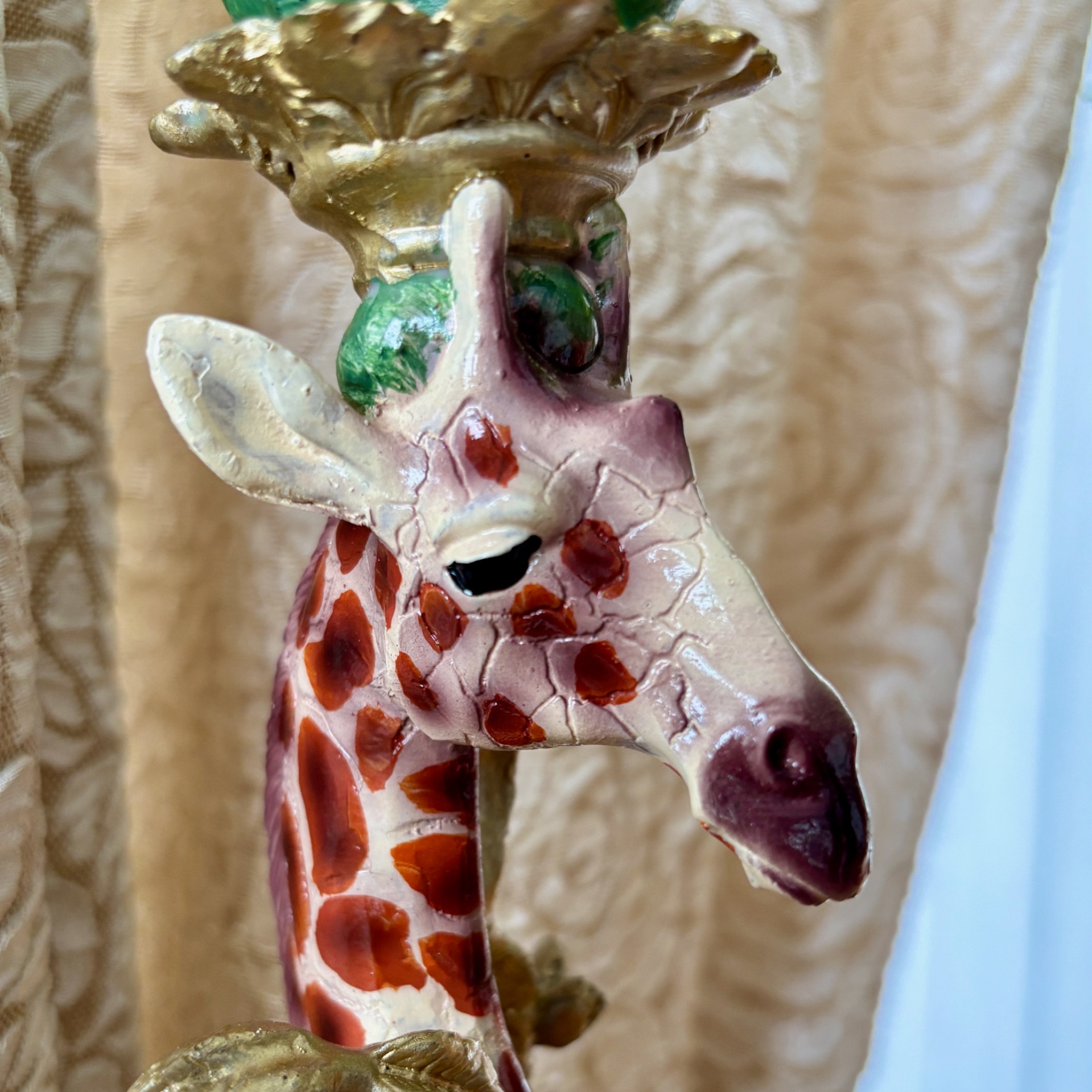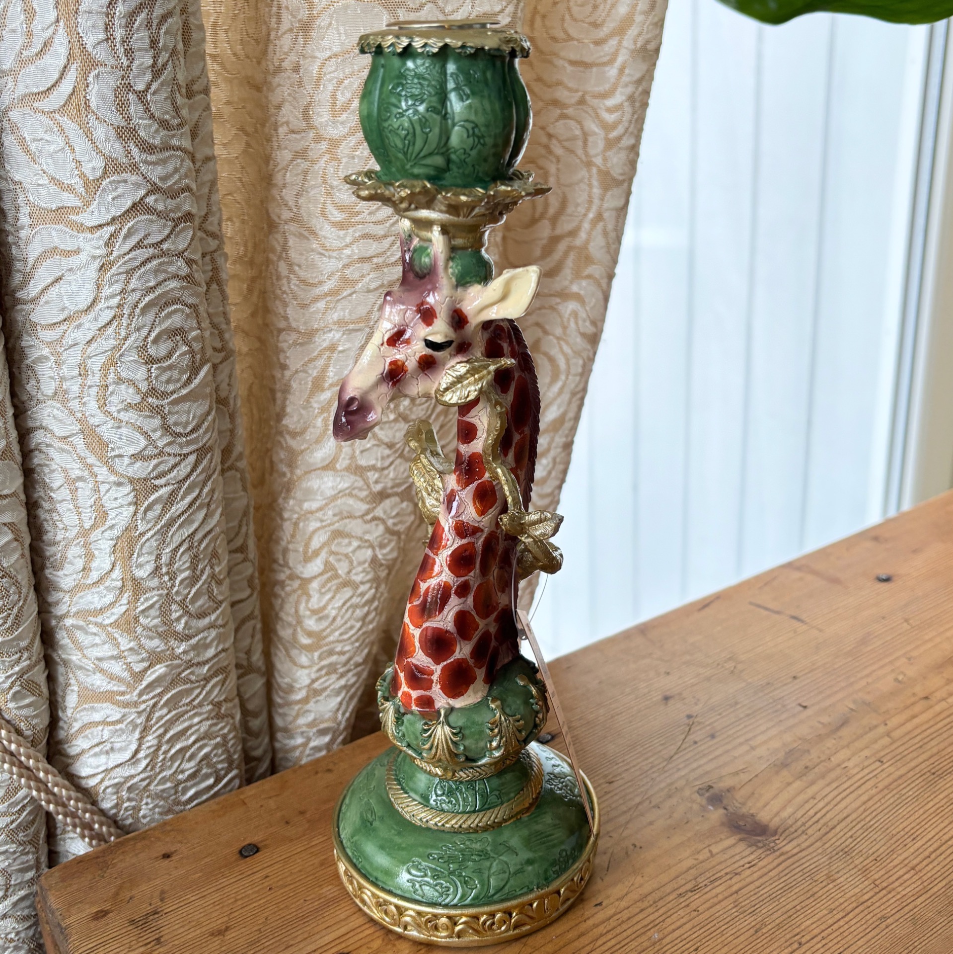 Herlig lysestake med en flott sjiraff som motiv. Nydelige, avstemte farger og får ikke denne lysestaken kommentarer - så skjønner ikke jeg :-)