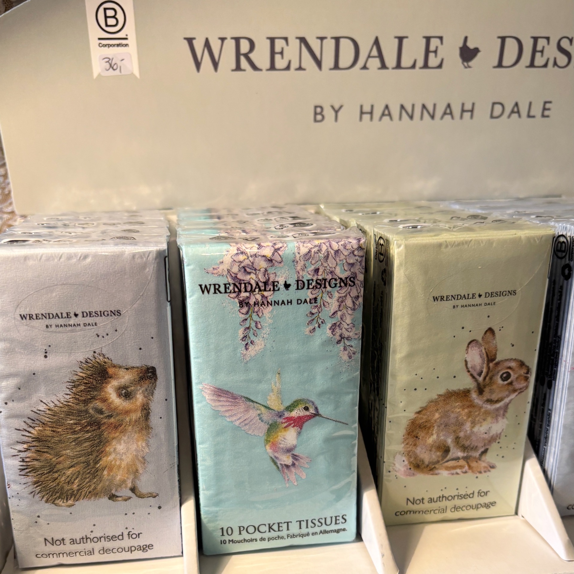 Lommetørklene er laget i 4-lags mykt papir, bleket uten bruk av klor og trykket med motiv på den ene siden. De er skånsomme både mot huden og miljøet, og kommer i en praktisk pakke laget av 50 % resirkulert materiale.