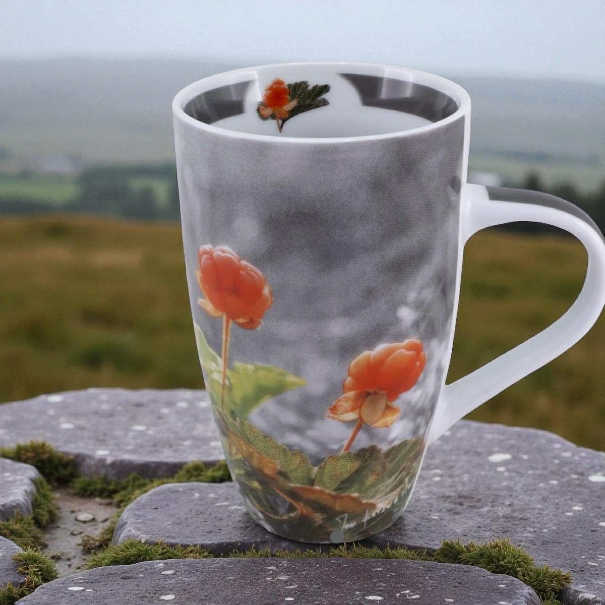 Norske Br. Flaarønnings krus i serien "Pryd" hyller akkurat multebæra, og det er selvsagt naturfotografen Jon Østeng Hov som har fanget de varme og vakre tonene i fjellets gull på krus nr. 19.
