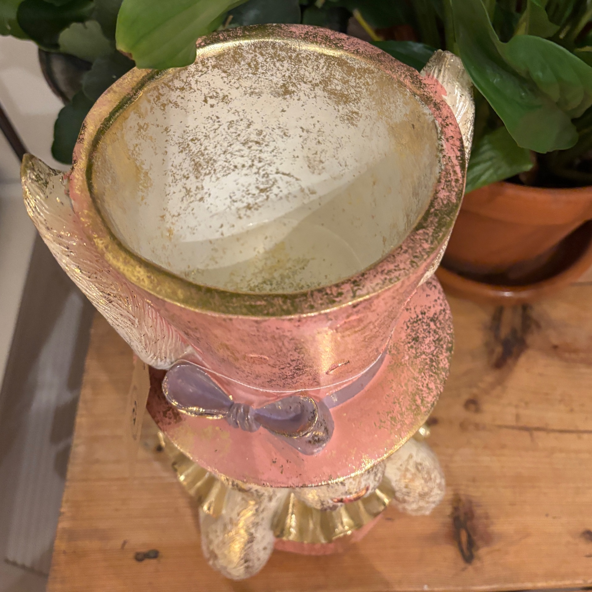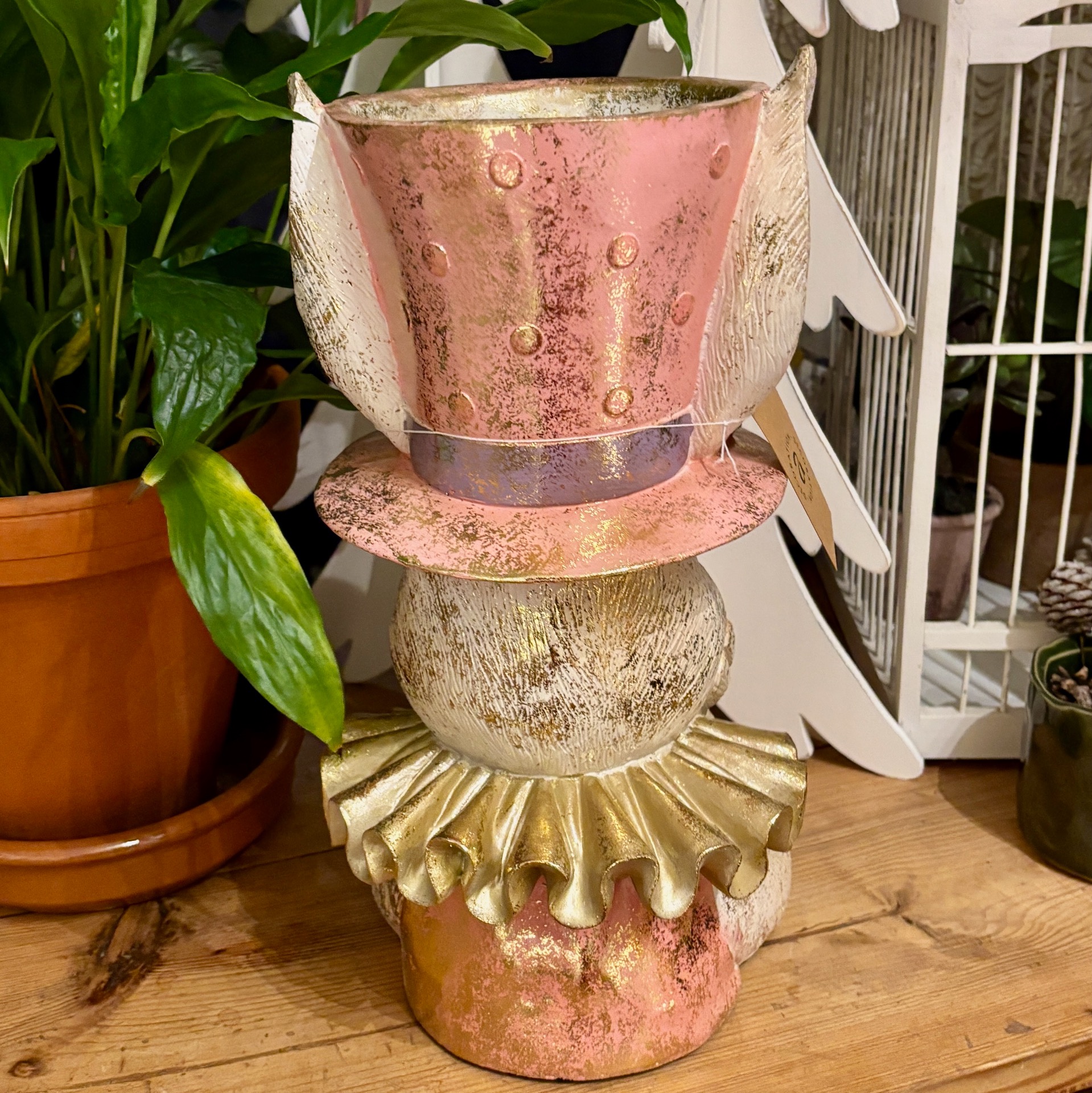 Livsglad blomsterpotte - om en kan si det om en blomsterpotte! Ihvertfall morsom og i glade farger. Her går det i rosa, beige, litt gull og i det hele tatt. Lyser ikke denne opp i interiøret, så vet ikke jeg :-)