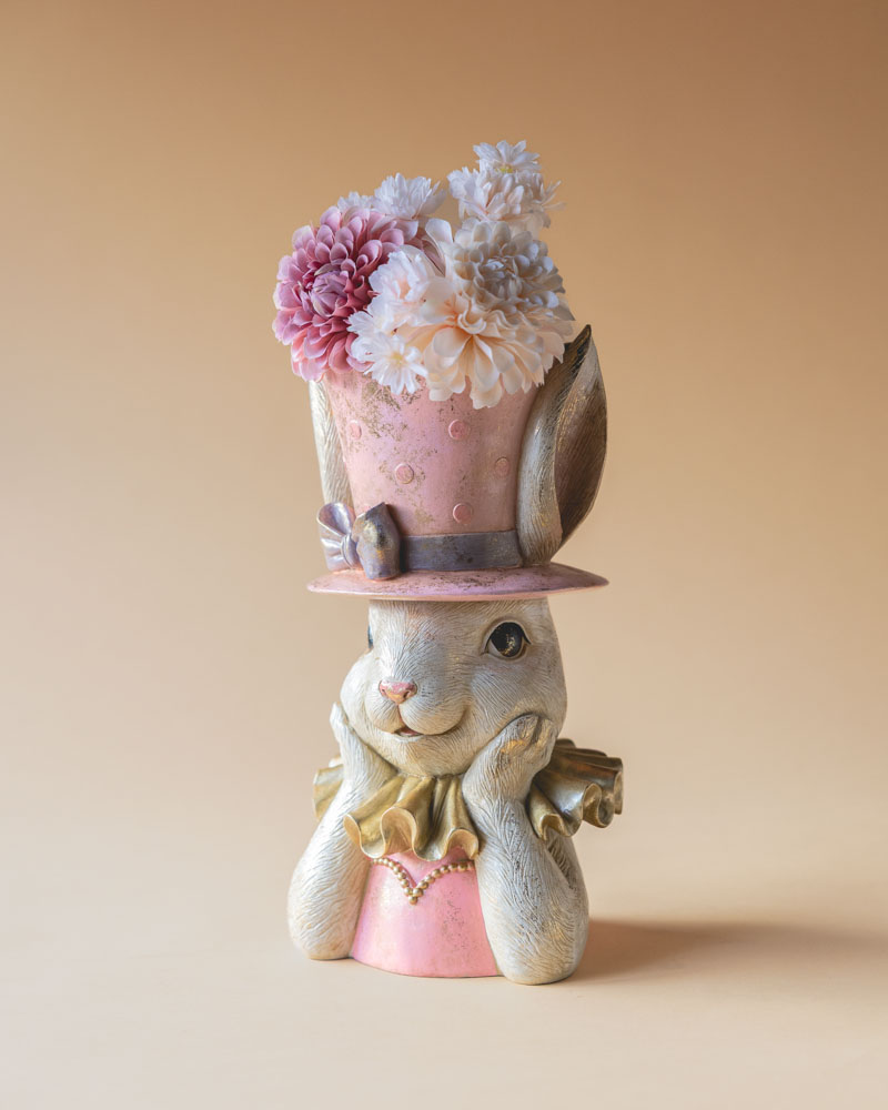 Potten er laget i polyresin og er hele 34 cm høy og bunn er 16x14 cm. Vekt er 1,3 kg.