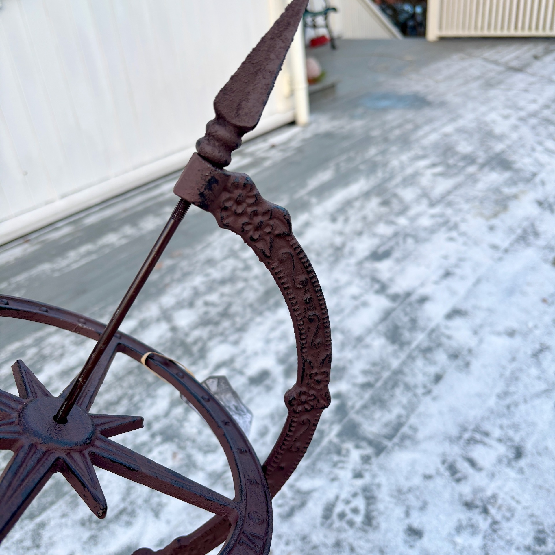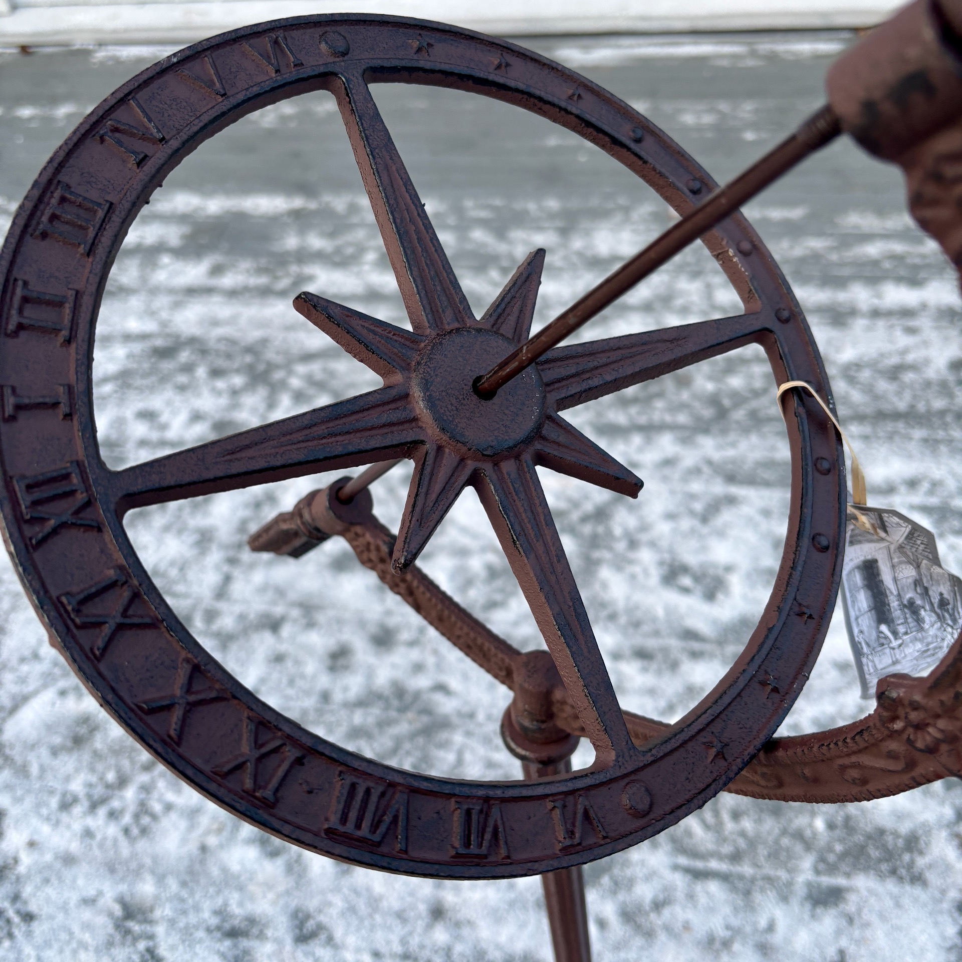 Dette er storebroren til det andre soluret som nettbutikken har. Denne versjonen er hele 93 cm høyt og er laget i brunt støpejern. Leveres i flere deler og skrues enkelt sammen.