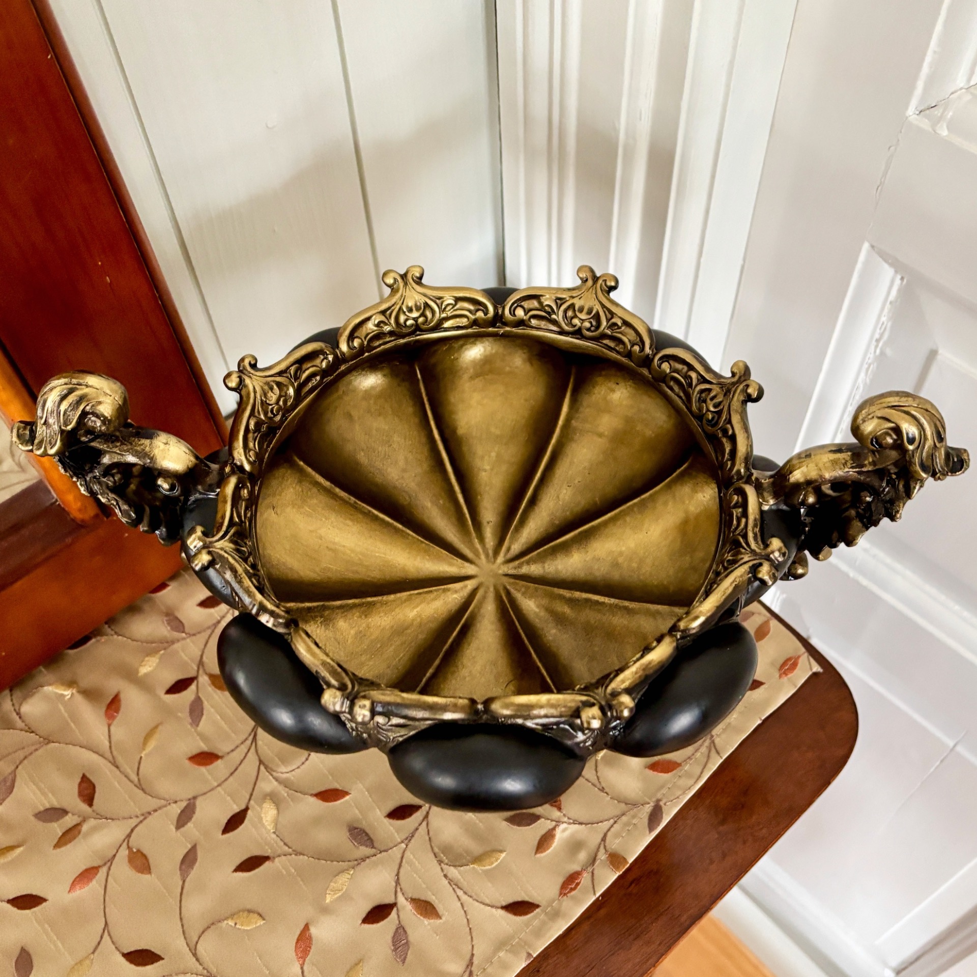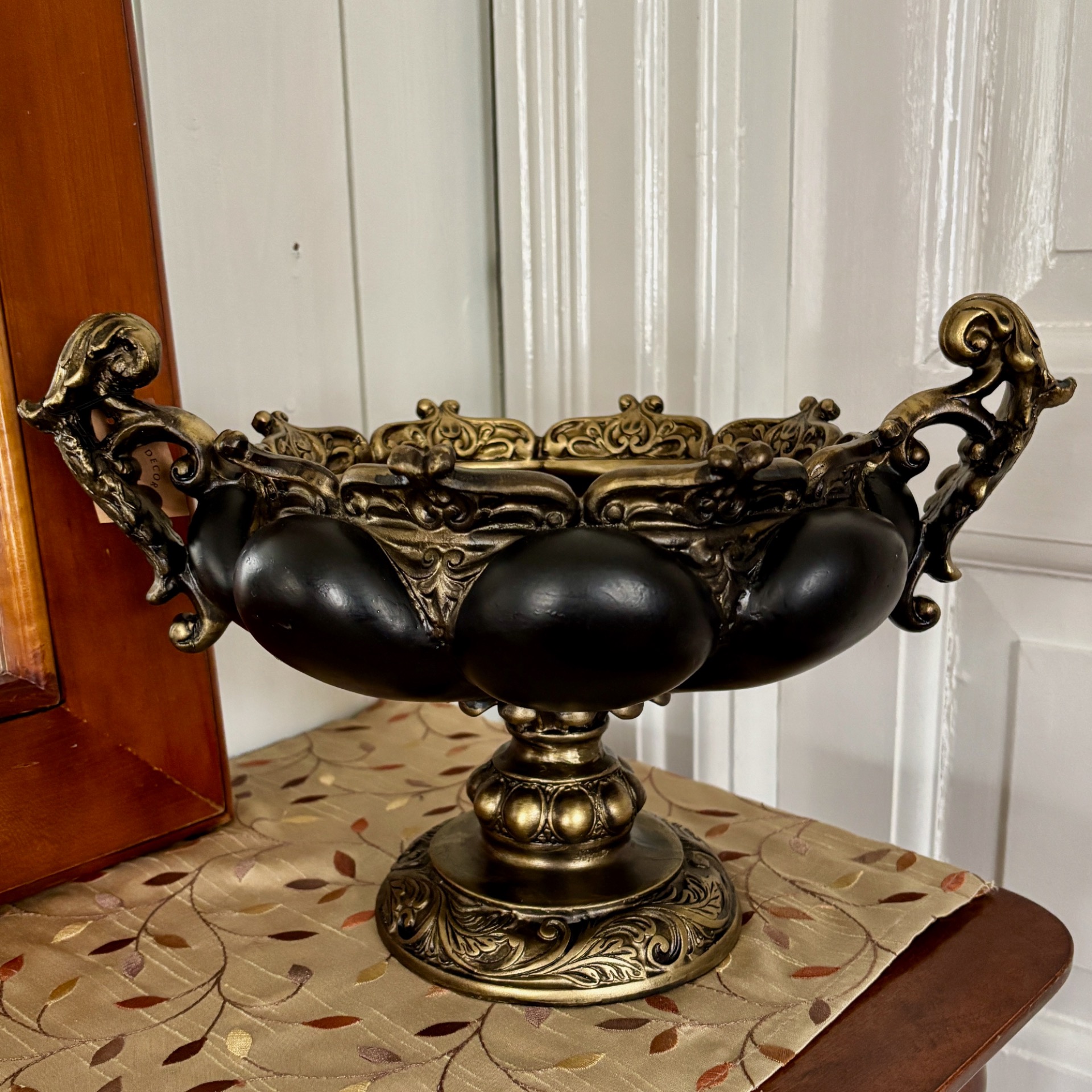 Jeg innrømmer det: Jeg er svært svak for saker og ting som er i kombinasjon sort & gull. :-) Denne skålen er noe så inderlig vakker, at jeg nesten ikke klarer å si det :-) Skålen er på stett (enda en svakhet for meg), det er gull og sort i herlig kombinasjon.