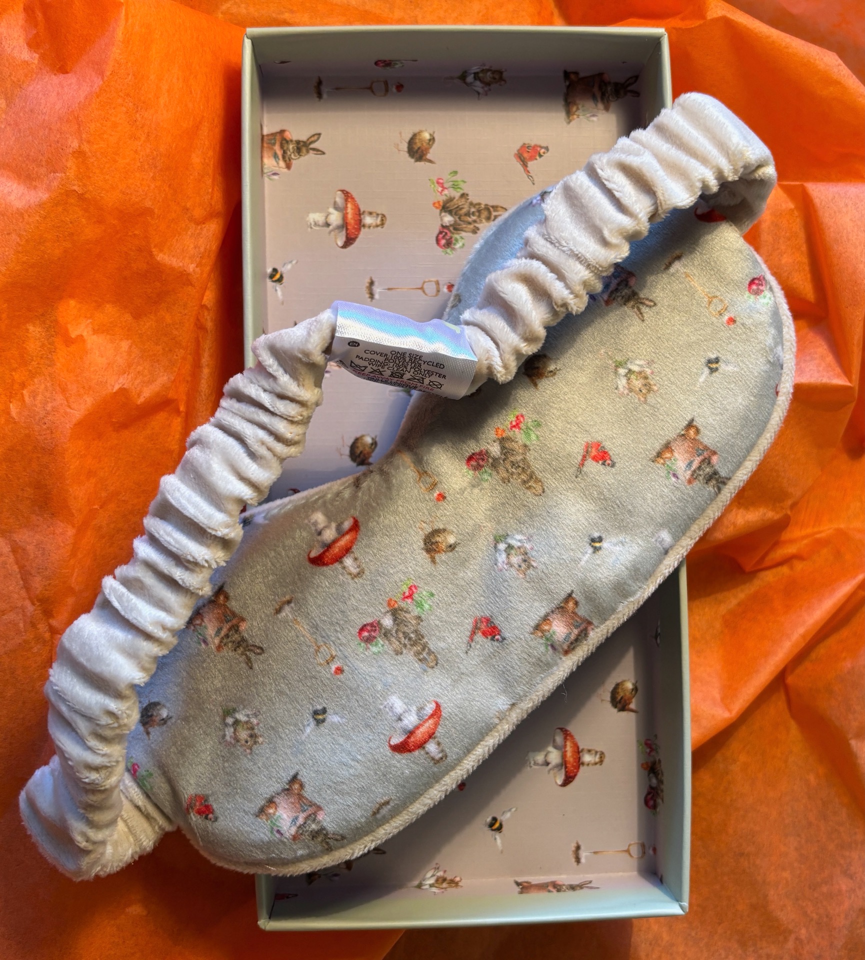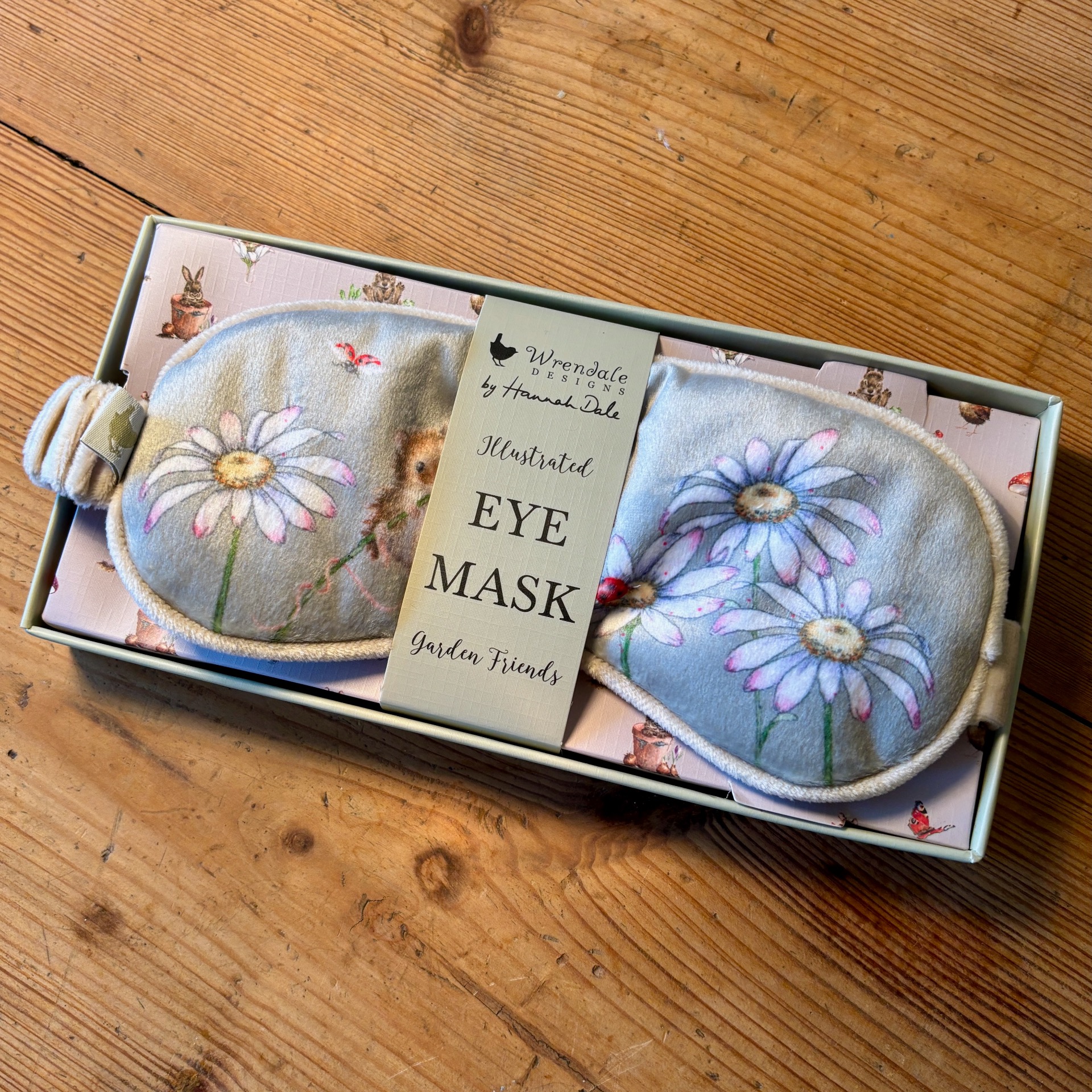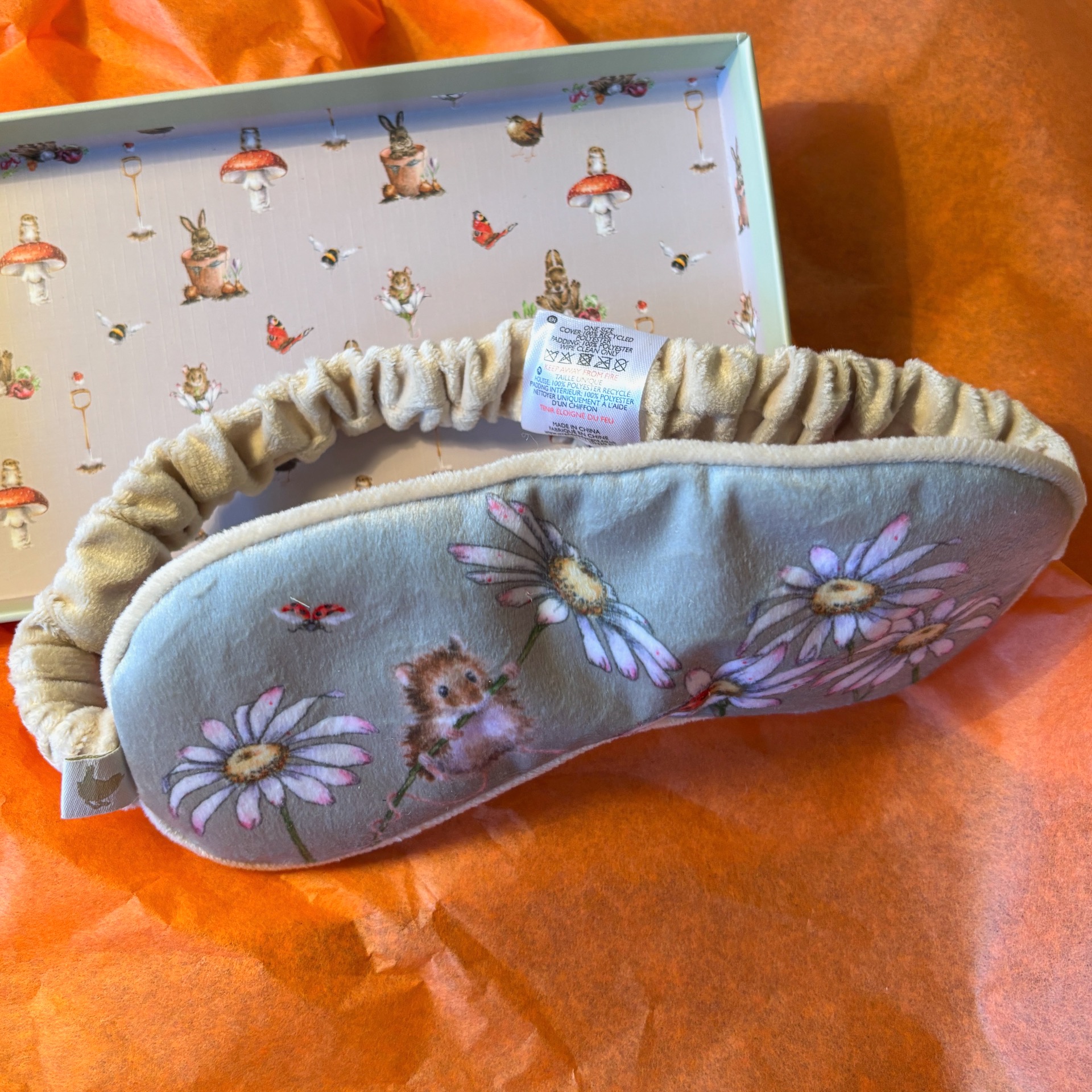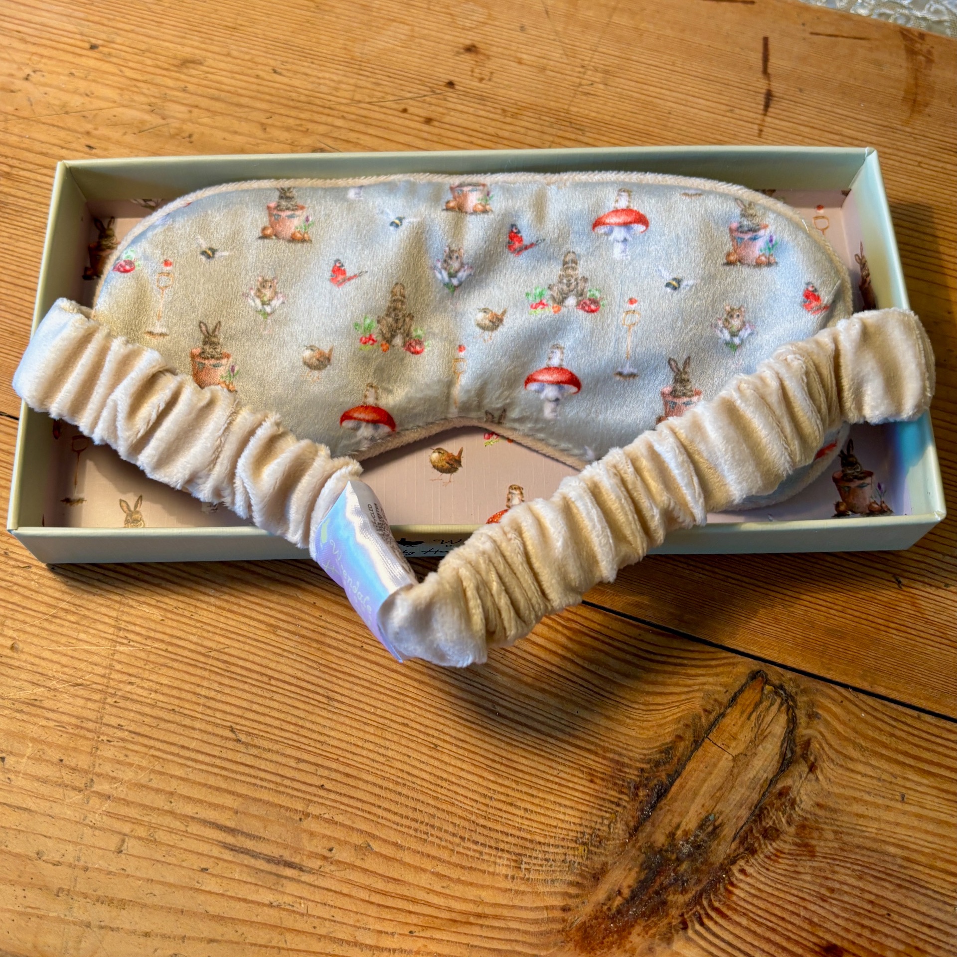 Alt laget i 100% resirkulert polyester. Wrendale Designs har en serie som heter "Garden Friends" og sovemasken inngår i den serien. Nettbutikken har også varmeflaske på lager i samme serie (den koster 299,-).