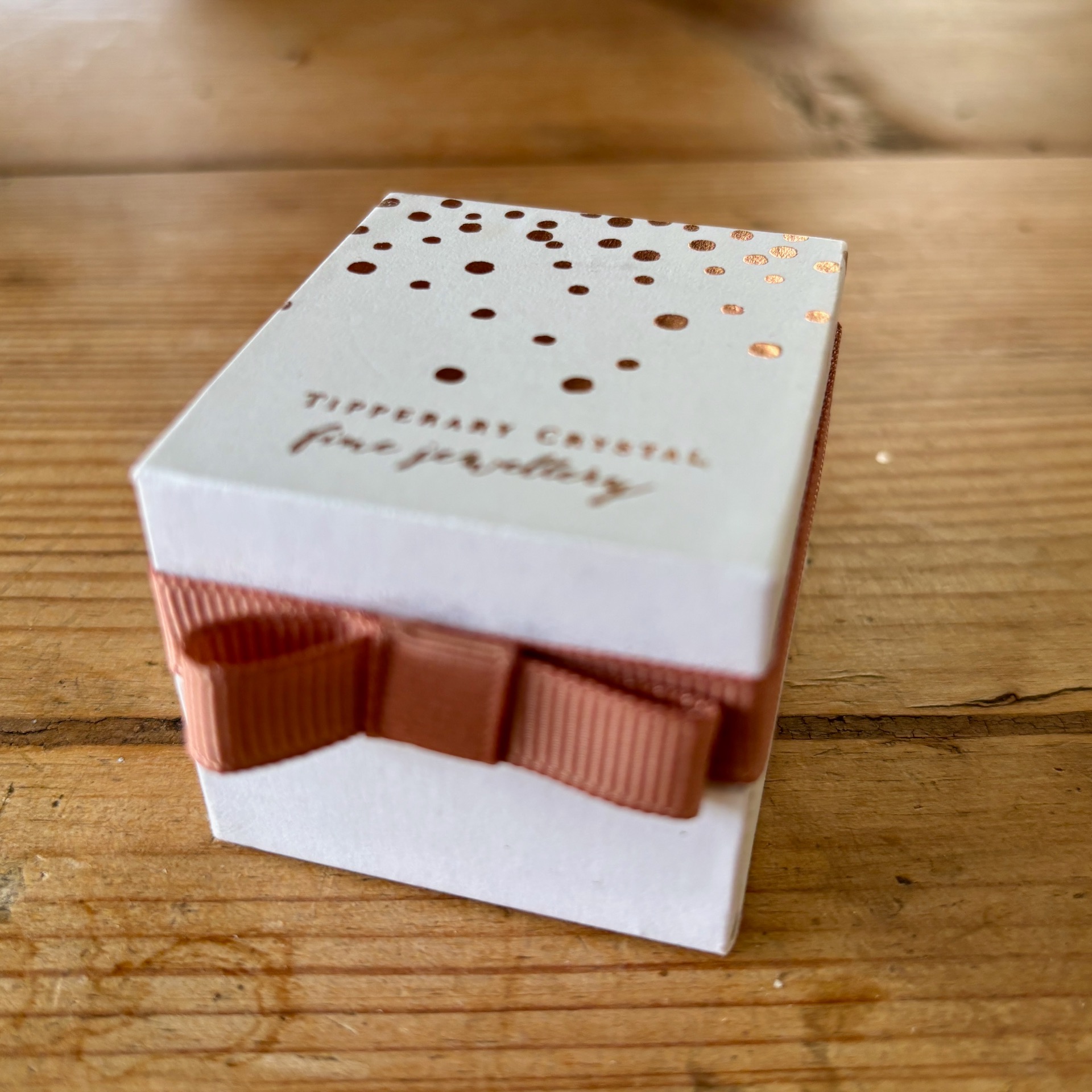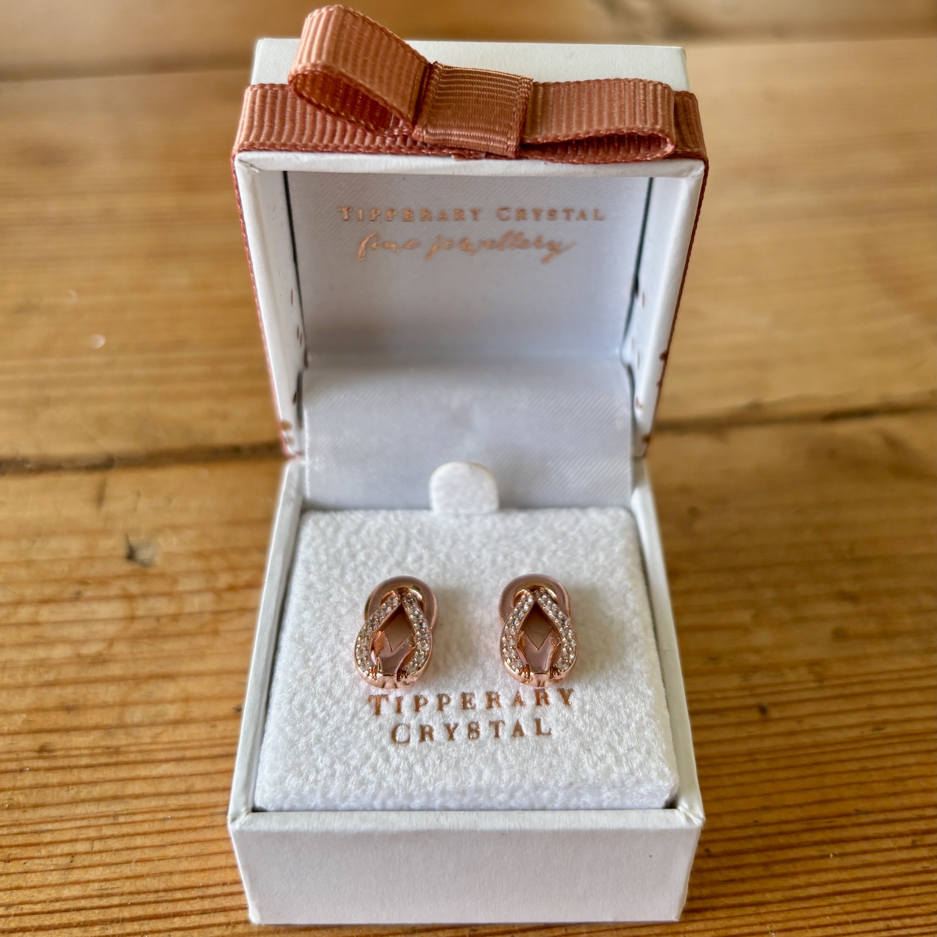 Irske Tipperary Crystal er produsenten bak ørepynten i rosegull. De er for dere med hull i ørene.