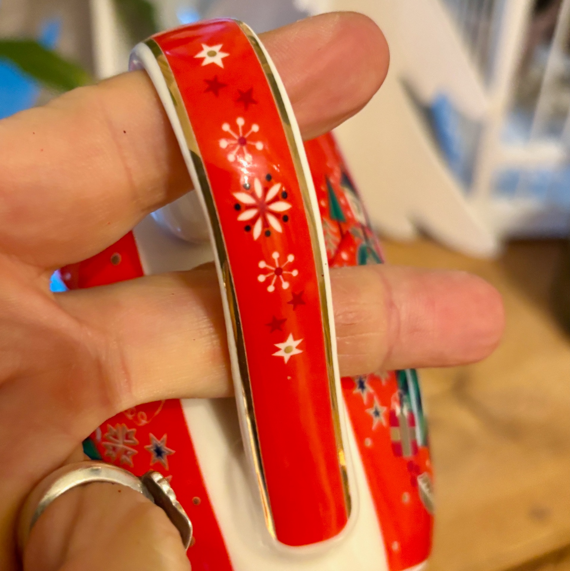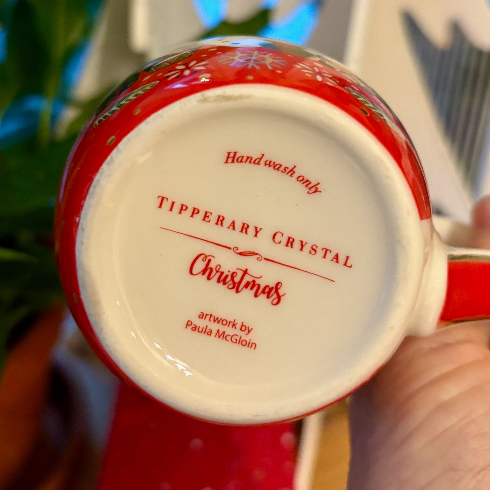 Irske Tipperary Crystal er produsent av dette rause julekruset i rødt og med gull detaljer. Kruset rommer 3,5 dl og det leveres i en flott eske. Her må du vaske for hånd - kruset liker ikke oppvaskmaskin. Det er laget i porselen forøvrig. Et nydelig og vakkert julekrus!