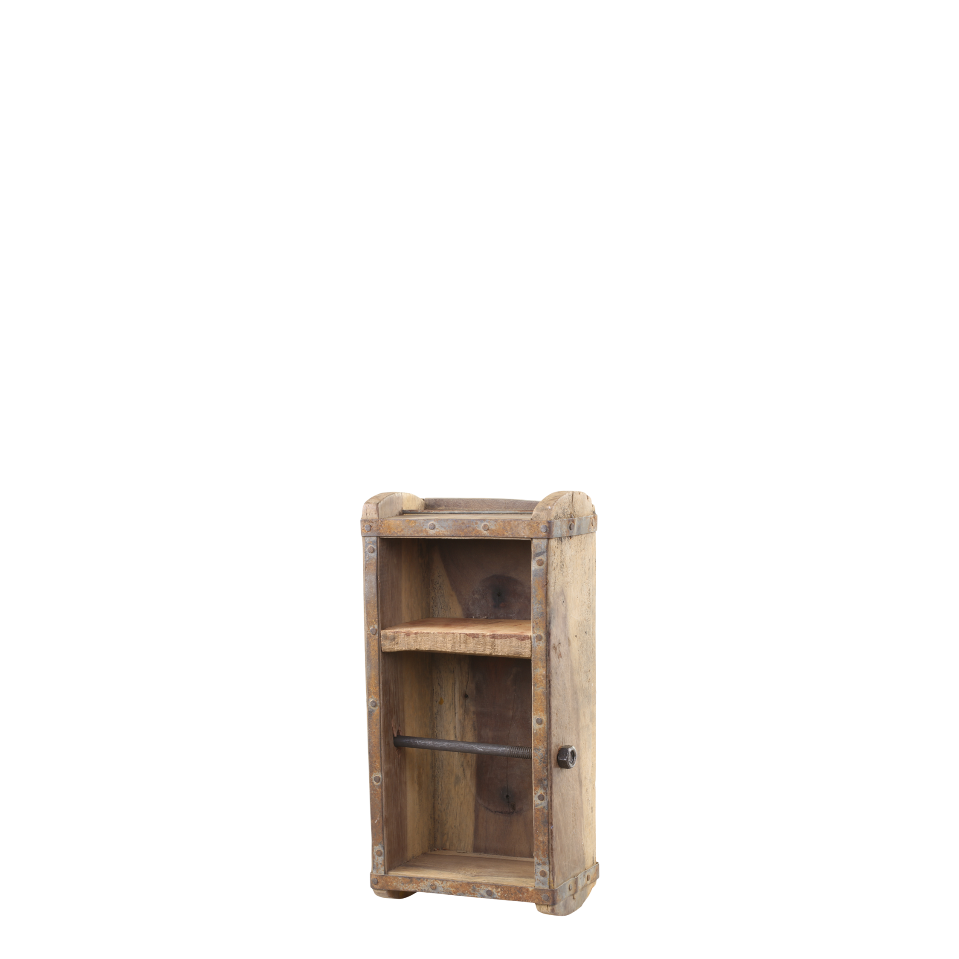 Rustikk, tøff og unik toalettrull-holder med plass til småting i de to hyllene.