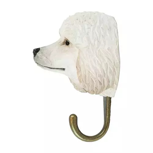 Hva med en håndlaget knagg på veggen i tre med en flott puddel som motiv? Dette er et litt overraskende og morsomt interiørelement, som både kan holde håndkleet, badekåpen din eller vesken. Eller hva du ønsker - selvsagt. Den er håndmalt med pensel i naturlige farger. Selve knaggen er i bronsefarget metall.