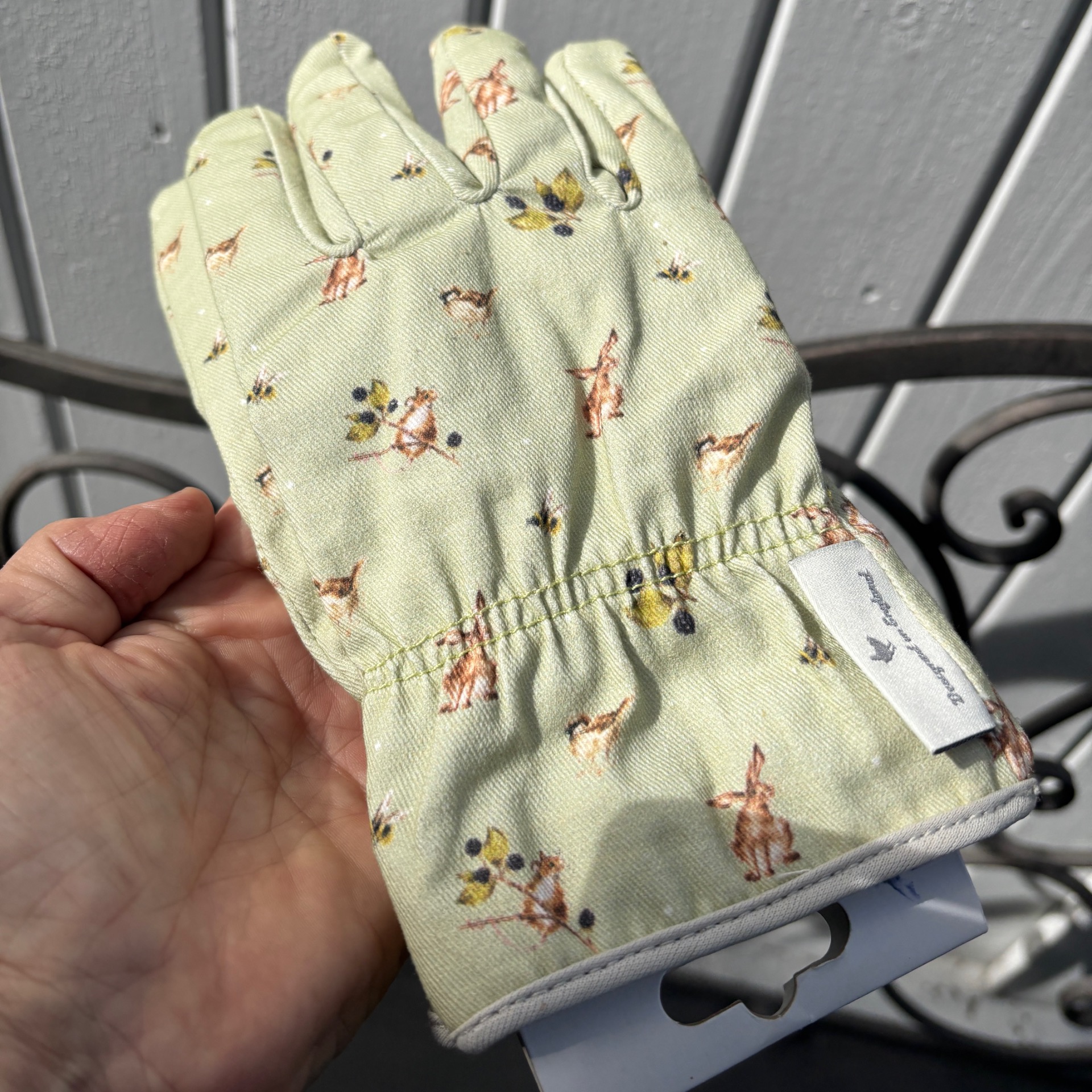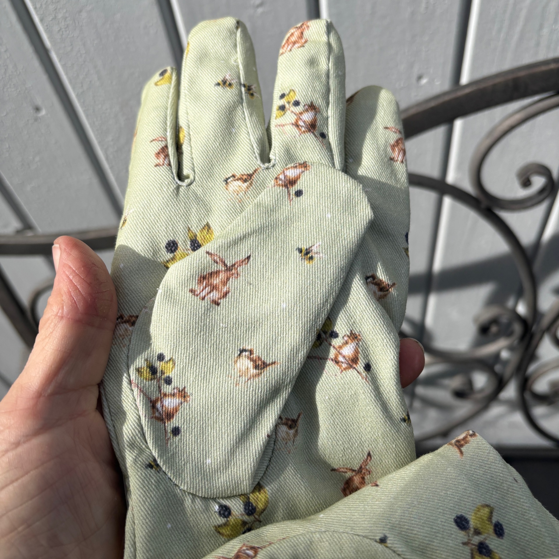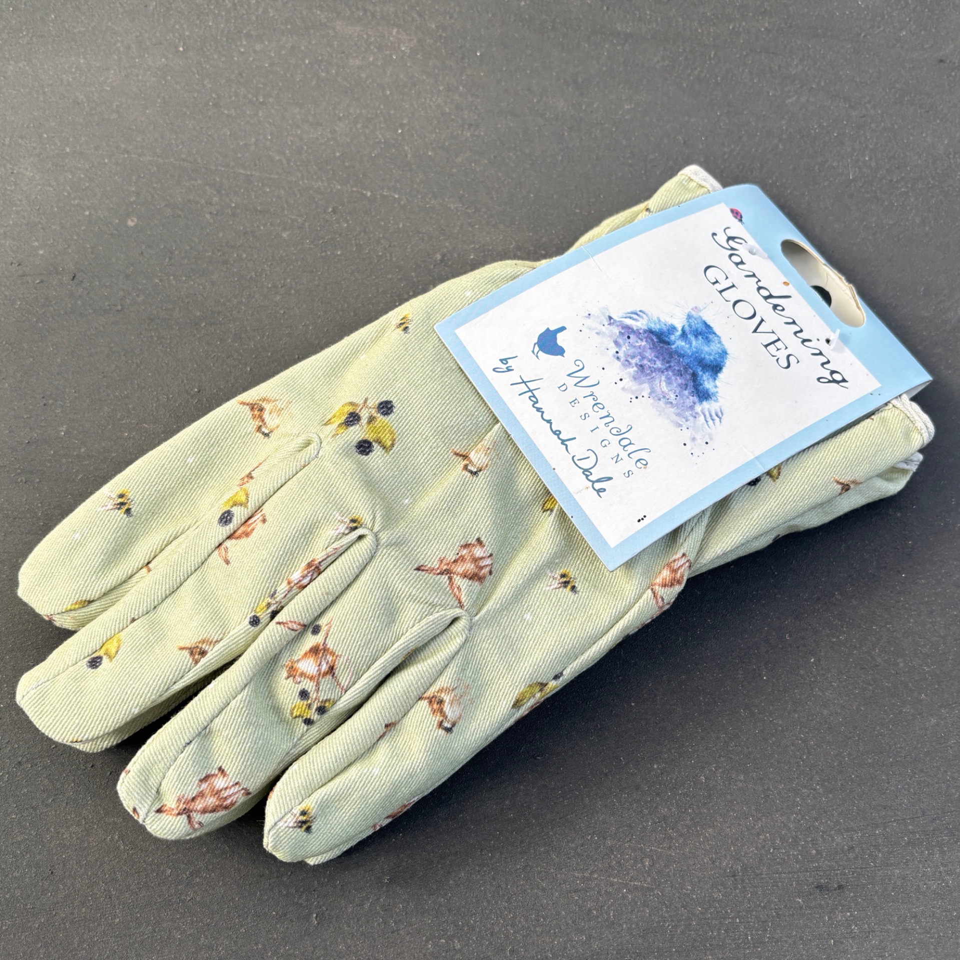 Søte bomullshansker fra Wrendale Designs i UK. Disse er laget i Great Brittain, de er laget i kraftig bomull og er prydet med Jo Stockdales lett gjenkjennelige illustrasjoner av dyr. Hanskene passer damehender.