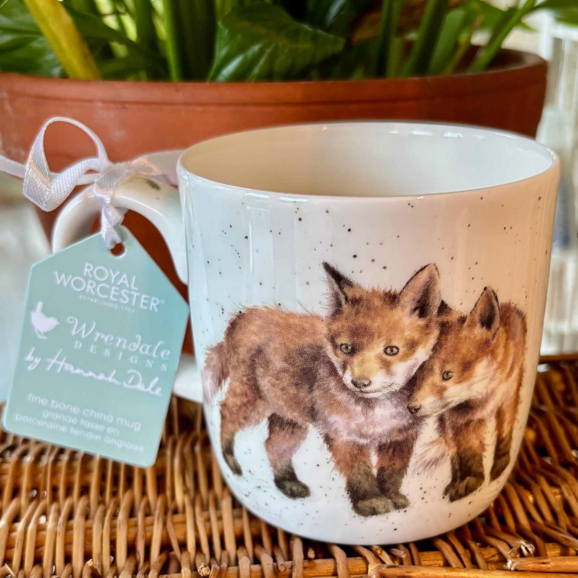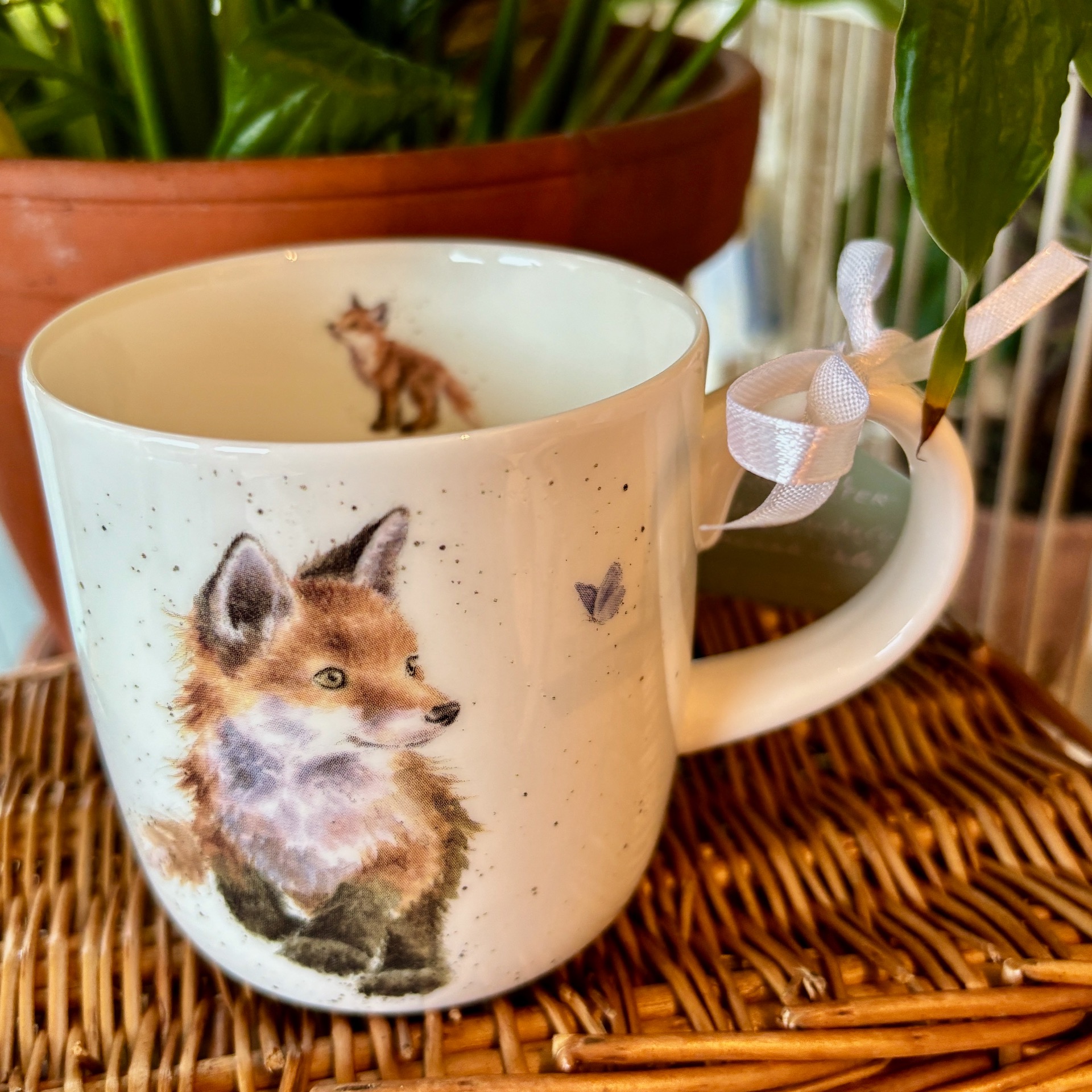 Kaffekopp med Hannah Dale sine skjønne akvareller på. Her er det reven som får vise seg frem.